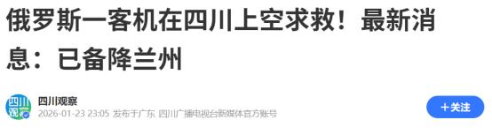 引起全球关注!2026年1月23日,中方向全球通报:俄罗斯一客机在四川上空求救!发送求救信号后,已备降兰州! 当飞机在飞行的时候,如遇到突发情况需立即着陆,或因目的地机场不适合着陆,那么飞机就会备降到其他机场。 备降的机场就需要满足跑道规格,消防等级等一些条件。所以当俄罗斯客机发出求救之后,我国就让该航班紧急备降在了兰州中川机场。 2026年1月23日下午的时候,我国航空突然收到了一“7700”紧急代码。发送该代码的是俄罗斯一客机,该客机从泰国普吉飞往俄罗斯巴瑙尔。但是就在飞行到我国四川上空的时候,却突然挂出紧急代码,向我国发出求救信号。 我国航空部门在收到该信号后,立即高度关注。在经多方沟通之后,让其备降在了兰州中川机场。兰州中川机场是西北重要的枢纽,所以具备国际航班的保障能力,非常适合紧急备降。 该客机的机组人员在同我国的高度配合下平安降落,机上的239名乘客和7名机组人员均未受伤,让不少人悬着的心放下。该意外在突发之后,我国立即通报了全球。 这起事件引起全球高度关注,这并不是一则“重大事故”,但是却是一次非常成功的应急处理案例。我国相关部门在收到紧急代码之后,没有慌乱,而是冷静配合。进一步向国际证明了,中国民航在国际航线应急保障方面,具有一定的硬实力。 对于我国来说,这是一个很好的体现机。但同时这件事情也给我国提出了警醒,一定要高度关注老旧客机的维护,国际航线备降预案等一些其他情况。 对此,您怎么看? (信息来源:俄罗斯一客机在四川上空求救!最新消息:已备降兰州-四川观察)
