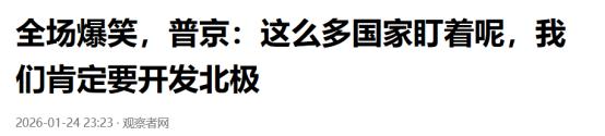 普京出招了!2026年1月23日,美军刚要抵达格陵兰,普京:我们肯定要开发北极! 从美国的近期军事行动中不难看出,美国对格陵兰岛怀揣着势在必得的决心。那么美国为什么对格陵兰岛势在必得?主要因素在于军事,资源等。 从资源方面看,美国有85%的稀土依赖进口,主要来自于我国。受中美关税等影响,我国对稀土进行了出口管控。所以美国急需去开发稀土资源,而格陵兰岛的稀土资源就非常丰富。 除了资源之外,美军如果控制了格陵兰岛。可以在格陵兰岛部署反潜与监控等体系,直接再度增强国防安全。 所以出于多种因素考虑,美国军队针对格陵兰岛采取了一些单边霸凌的行径。美国的这种行为引起了国际的高度讨论,就在2026年1月23日的时候,俄罗斯总统普京在会见莫斯科物理技术学院的学生及毕业生时,就对于北极问题做出了表态。 据普京表示,俄罗斯无论如何都将开发北极。普京的这番表态引起极大关注,普京在强调俄罗斯要开发北极的同时。还表示除了俄罗斯之外,还有很多国家都对北极地区的动态高度关。 从普京的这番言论中,能够得得到一个很明确的点。那就是特朗普想要直接登陆格陵兰岛,非常的困难。 俄罗斯为什么要开发北极呢?主要原因在于俄罗斯约70%的领土,都位于高纬度北部地区。所以开发北极地区对俄罗斯来说,具有不可替代的战略意义。一旦让美国成功占领了格陵兰岛,就会直接给俄罗斯造成安全威胁。 对此,您怎么看?欢迎评论区留言您的看法,我们一起讨论一下。 (信息来源:取消加税排除动武,美国“后退”难解格陵兰岛问题-环球时报) (信息来源:全场爆笑,普京:这么多国家盯着呢,我们肯定要开发北极-观察者网)