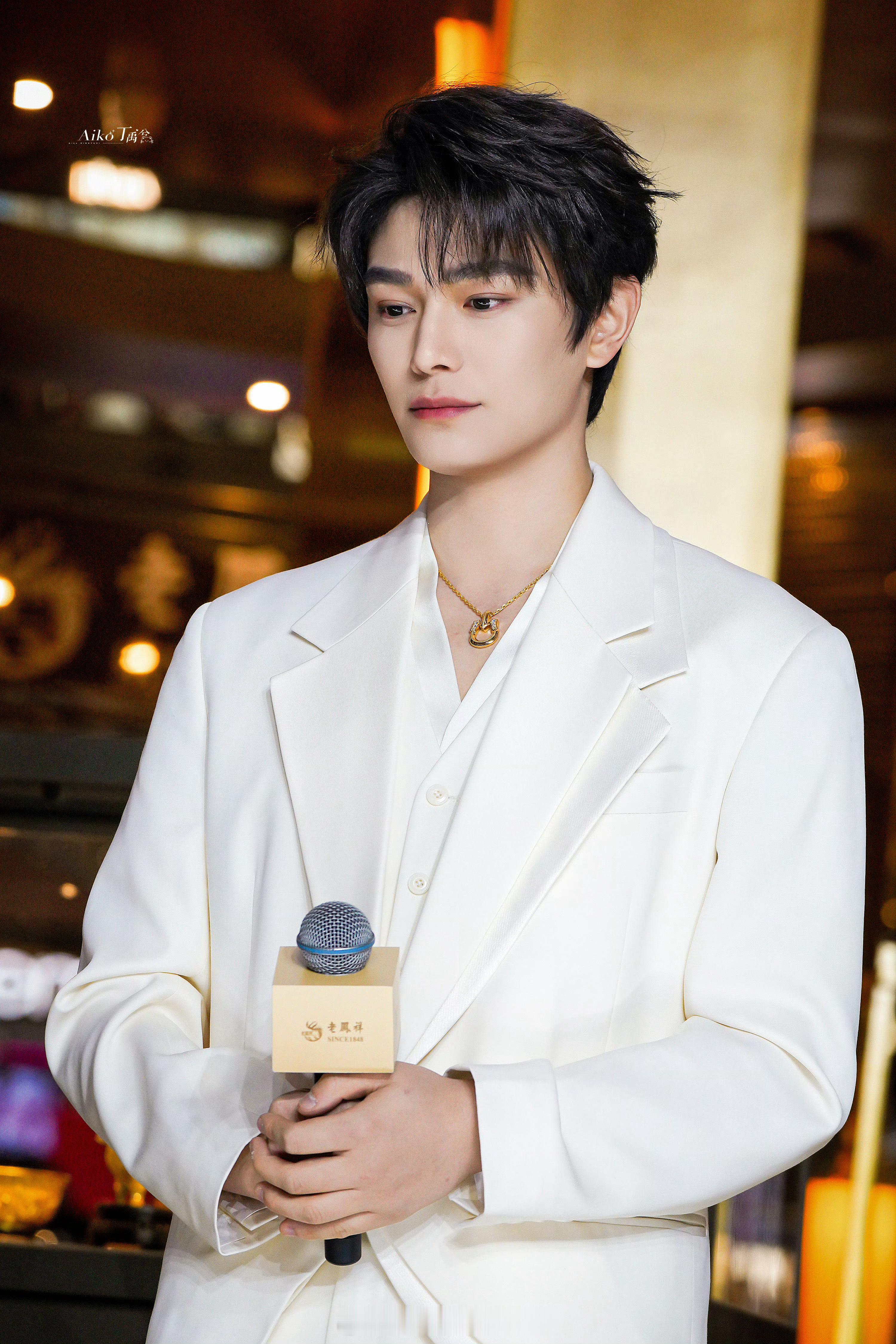 丁禹兮今日老凤祥活动饭拍,完全白马王子来的丁禹兮刷卡给粉丝送黄金丁禹兮白西装
