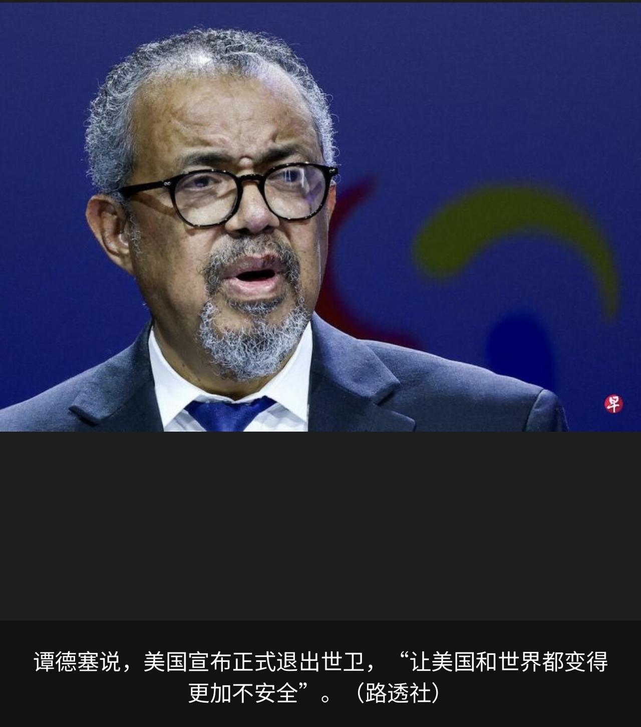 谭德塞驳斥美国退出世卫的理由“不实” 世界卫生组织总干事谭德塞1月24日驳斥美国退出世卫组织的理由,称美国对世卫组织的批评“不实”。谭德塞警告说,美国本周宣布正式退出世卫组织,“让美国和世界都变得更加不安全”。 他说:“不幸的是,美国退出世卫组织的理由并不属实。”“世卫组织始终与美国及所有成员国保持合作,并充分尊重它们的主权。” 美国国务卿鲁比奥和卫生部长肯尼迪22日发表联合声明,宣布华盛顿已正式退出世卫组织。他们指责世卫在冠病疫情期间“屡次失职”,并“一再损害美国的利益”。