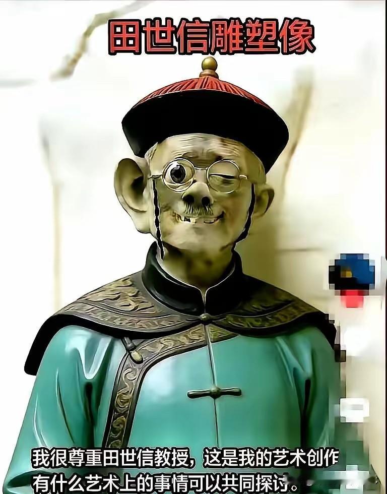 这回田世信算是真踢到铁板上了,看得我直乐呵。 以前他把老子、秋瑾捏成那个鬼样子,还硬说是啥艺术表现,咱们老百姓看不懂还得被说没文化。 现在好了,广大网友彻底“悟”了。 既然这是高级艺术,那咱们就用田大师的手法,给他老人家也来个“写实”塑像。 满屏都是歪嘴斜眼的田世信,你别说,这味道还真对。 这哪里是恶搞?这分明是最高规格的“致敬”啊! 这就是典型的“用魔法打败魔法”。 艺术这东西一旦脱离了大众审美,非要搞特立独行,就别怪大家伙儿用你的逻辑来回敬你。 田大师这下估计也没话说了,毕竟大家都是按您的“标准”来的,这才是真正的现世报。