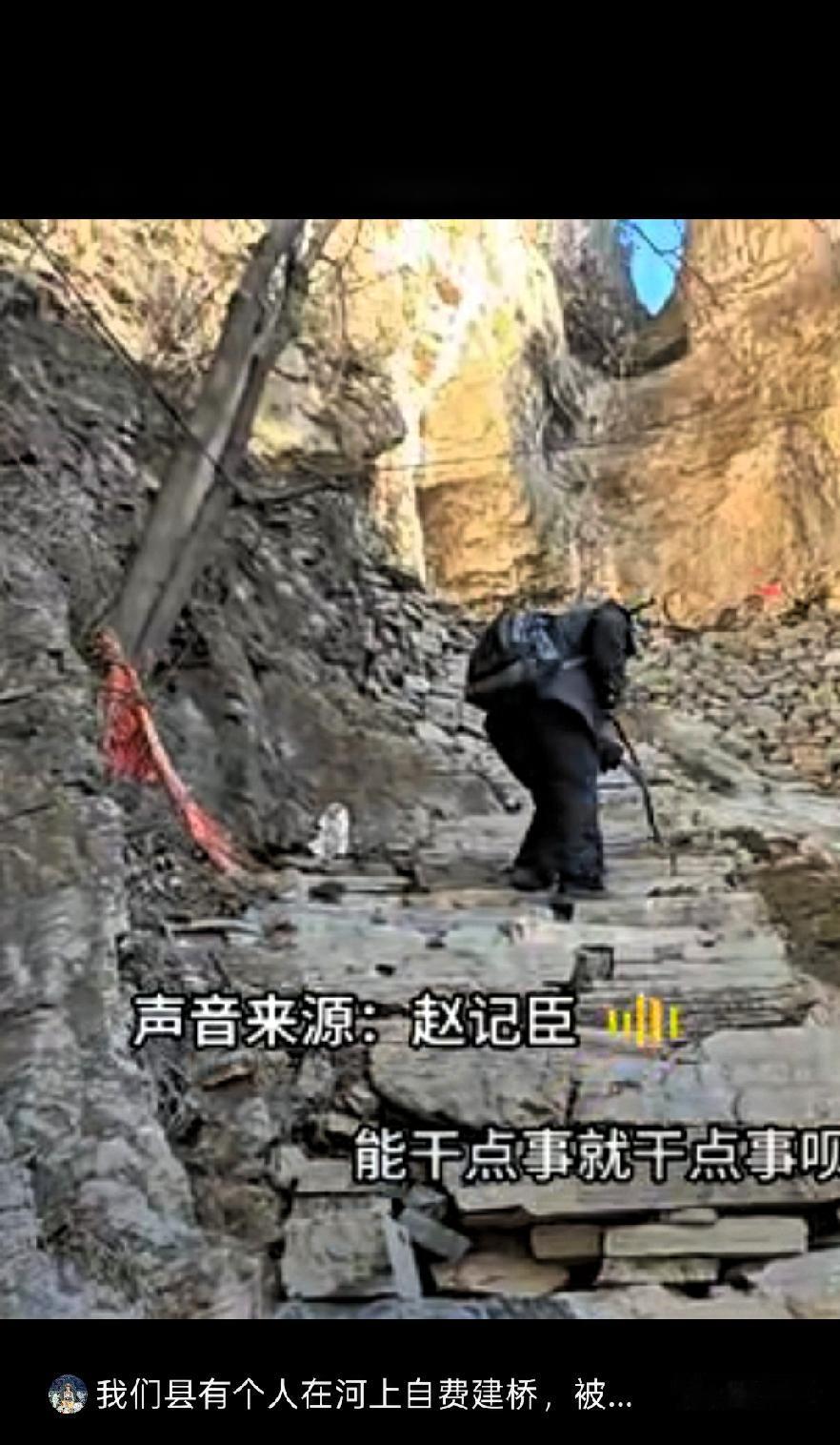 太有毅力了!”河北保定阜平81岁的赵记臣大爷,退休后的生活选择让人打心底里敬佩。 他既不跳广场舞消磨时间,也不抱着手机刷视频,而是心里装着乡邻,一头扎进深山,用11年的时间,自掏百万还向亲友借钱,带着村民一锤一凿,在陡峭的山间修出了近万步天梯,实实在在为大家办了件大实事。 赵大爷家住深山旁,看着家门口难行的山路,总想着能修条路方便乡亲们出入。没有项目资金支持,他就把每月的退休金全投进去,日常能省则省,日子过得十分节俭,退休金不够,就放下脸面跟亲戚朋友开口借,前前后后累计投入超百万元。 没有专业的工程队,他就挨家挨户动员当地村民,自己带头上阵,每天按时给大家发工资,一群人肩挑背扛,铺台阶、凿石头,每一步都做得踏踏实实。 深山里作业,辛苦是可想而知的。夏天烈日暴晒,汗水常把衣衫浸透,还有蚊虫不停叮咬;冬天寒风刺骨,路面湿滑,稍不留意就容易摔跤。赵大爷年事已高,有时在山里忙一整天,累得直淌鼻血,家人看了心疼劝他休息,可他记挂着修路的事,稍作调整又继续忙活。 寒来暑往11年,山路终于变成了平整的天梯。有人问他费这么大劲、花这么多钱图啥,赵大爷指着亲手修的路说,这就是金山。在他心里,这条路是方便乡邻的便民路,更是能留住乡情的暖心路,闲暇时他还会整理神仙山上的北岳文化遗存,想着让家乡的文化被更多人知道。 赵大爷的这份坚持,没有惊天动地的壮举,却全是实实在在的付出。平凡的人,凭着一颗为他人着想的心,做着不平凡的事,这样的老人,值得所有人尊重。他用行动告诉我们,不管年纪多大,有心做事、真心付出,就总能发光发热