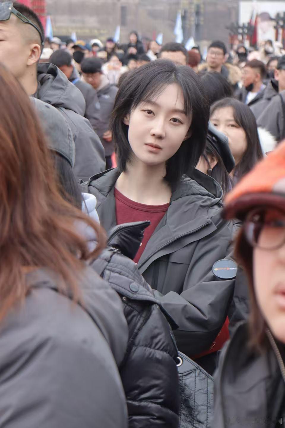 张天爱跟素人合影,胯真的好宽,大宅院似的