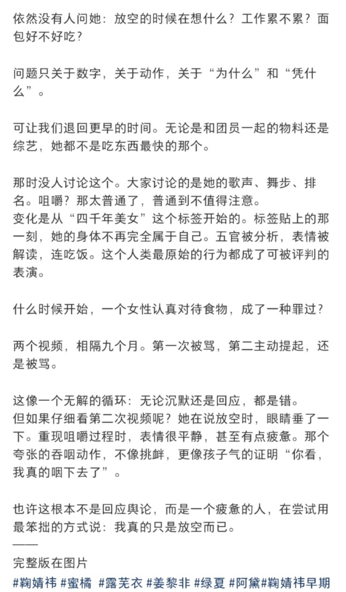 鞠婧祎 你可以慢慢吃东西 体感很强!我觉得这两年大家对鞠婧祎也宽容多了,路人缘也好了,之前的尬黑正在走理解明白的流程,这两年鞠的好评越来越多