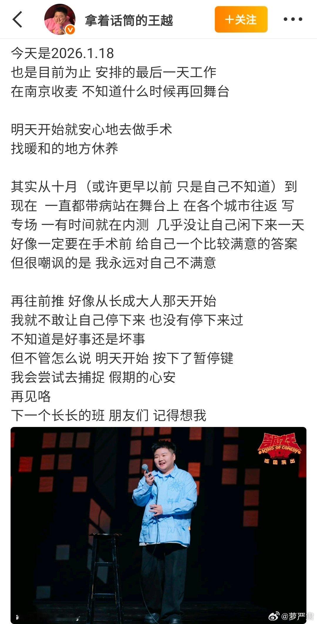 脱口秀女演员王越确诊甲状腺癌开始治疗了。🙏🏻