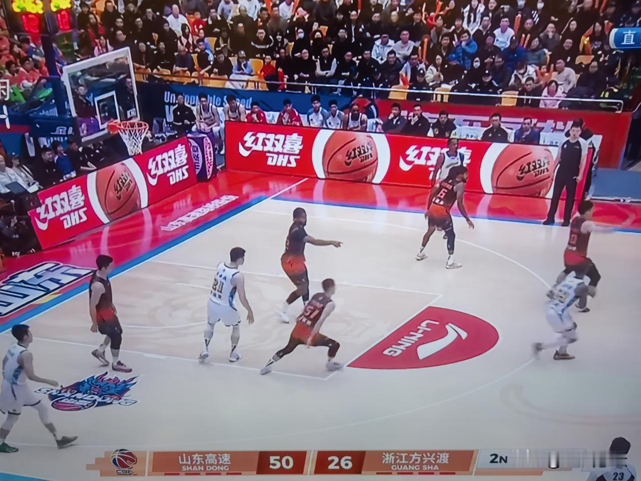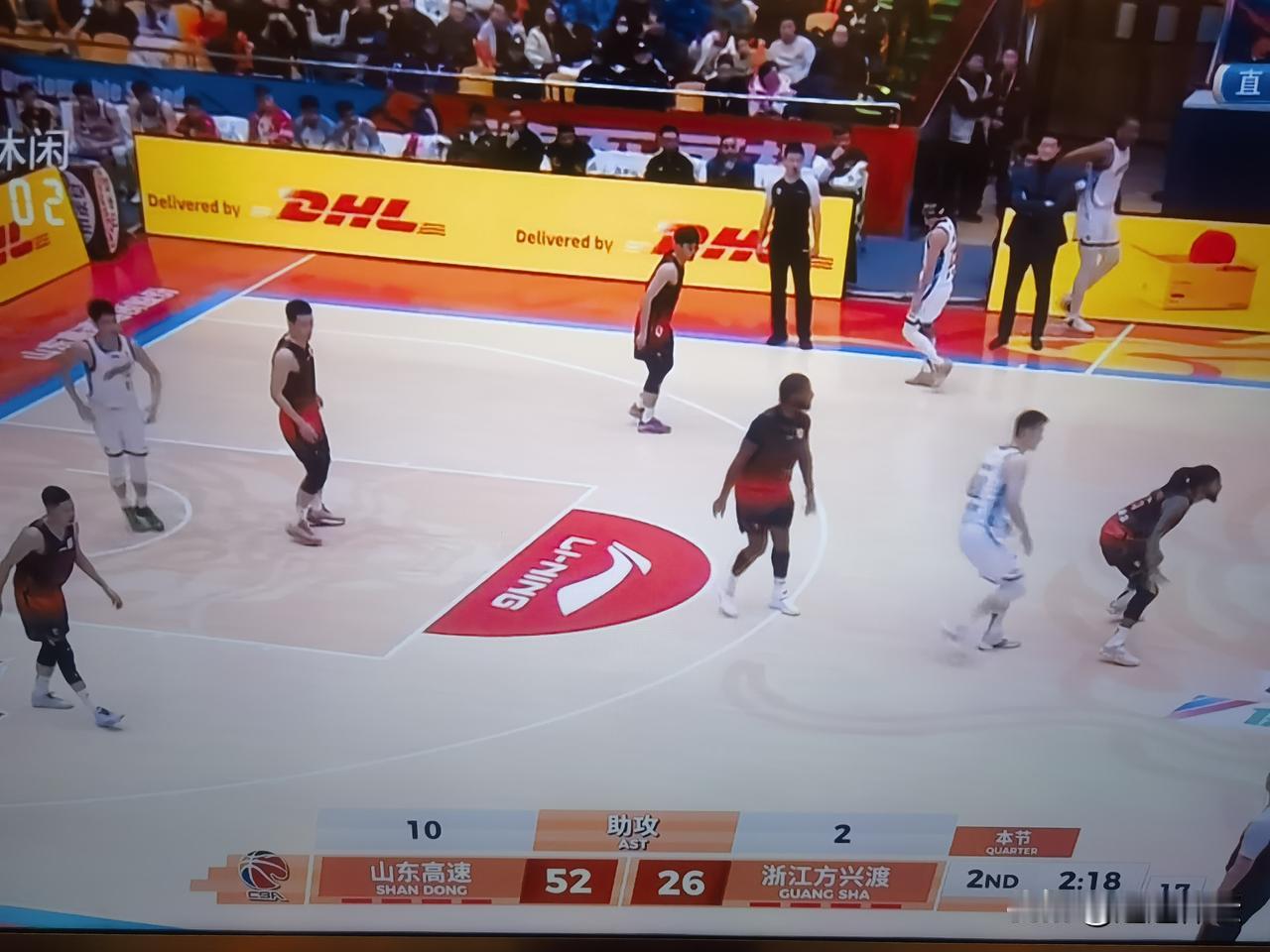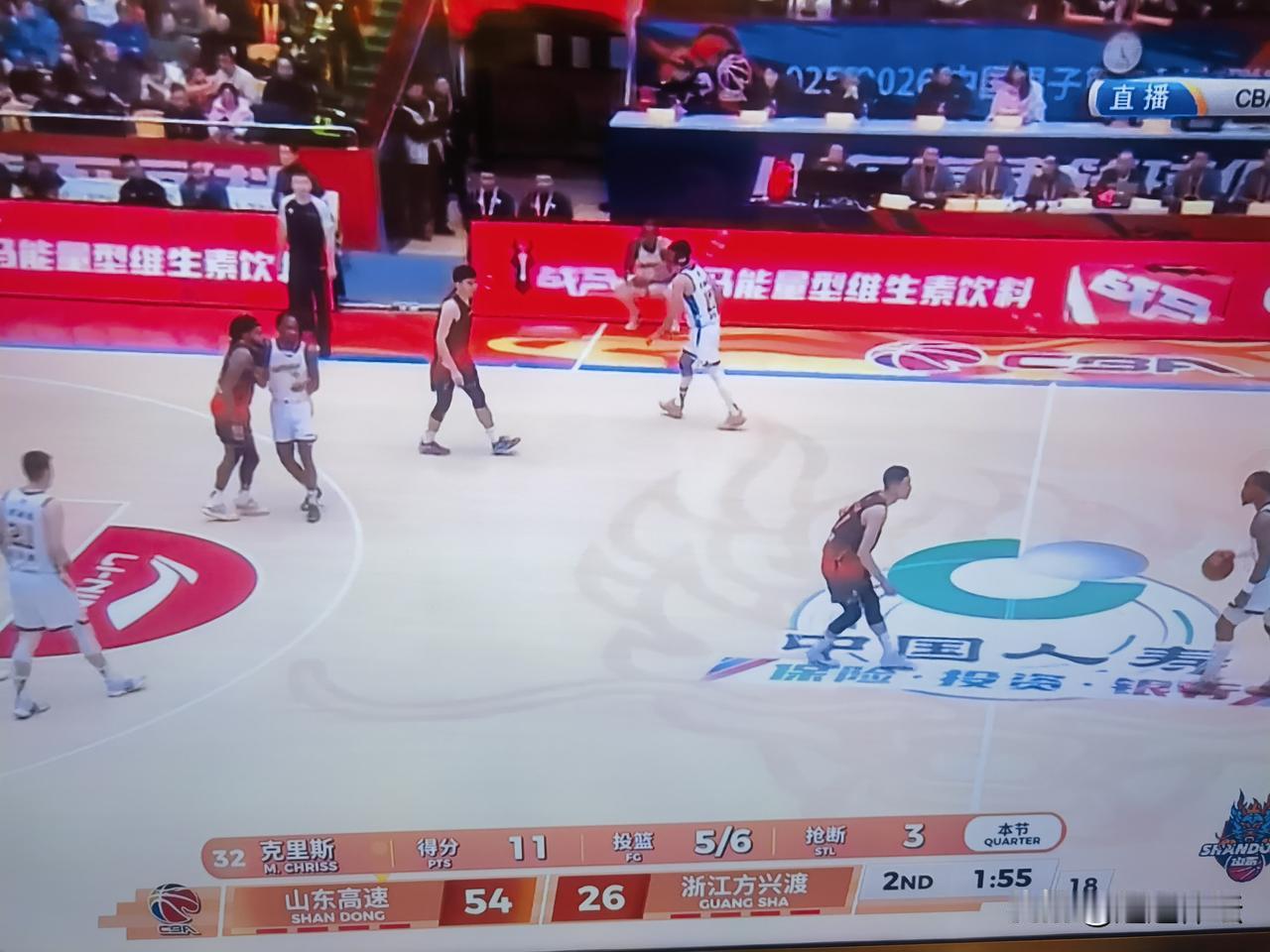 54:26山东高速男篮主场领先浙江方兴渡28分!第二节还没有结束,山东高速男篮已经彻底把浙江方兴度给拖垮了!克里斯鲍威尔在场上轮番轰炸,陶汉林的中投,谢志杰,高诗岩的强力防守,山东高速男篮全部开花了!浙江方兴渡主帅王博在叫了两次暂停以后,最后连暂停也不叫了! 山东高速男篮回到济南第一个主场,打的太兴奋了,太轻松了,太写意了,济南的球迷掀起了人浪!山东体育频道的直播员也都是说,如果保持这个状态,今晚上拿下浙江方兴度肯定没有问题,但是比赛还没有结束!