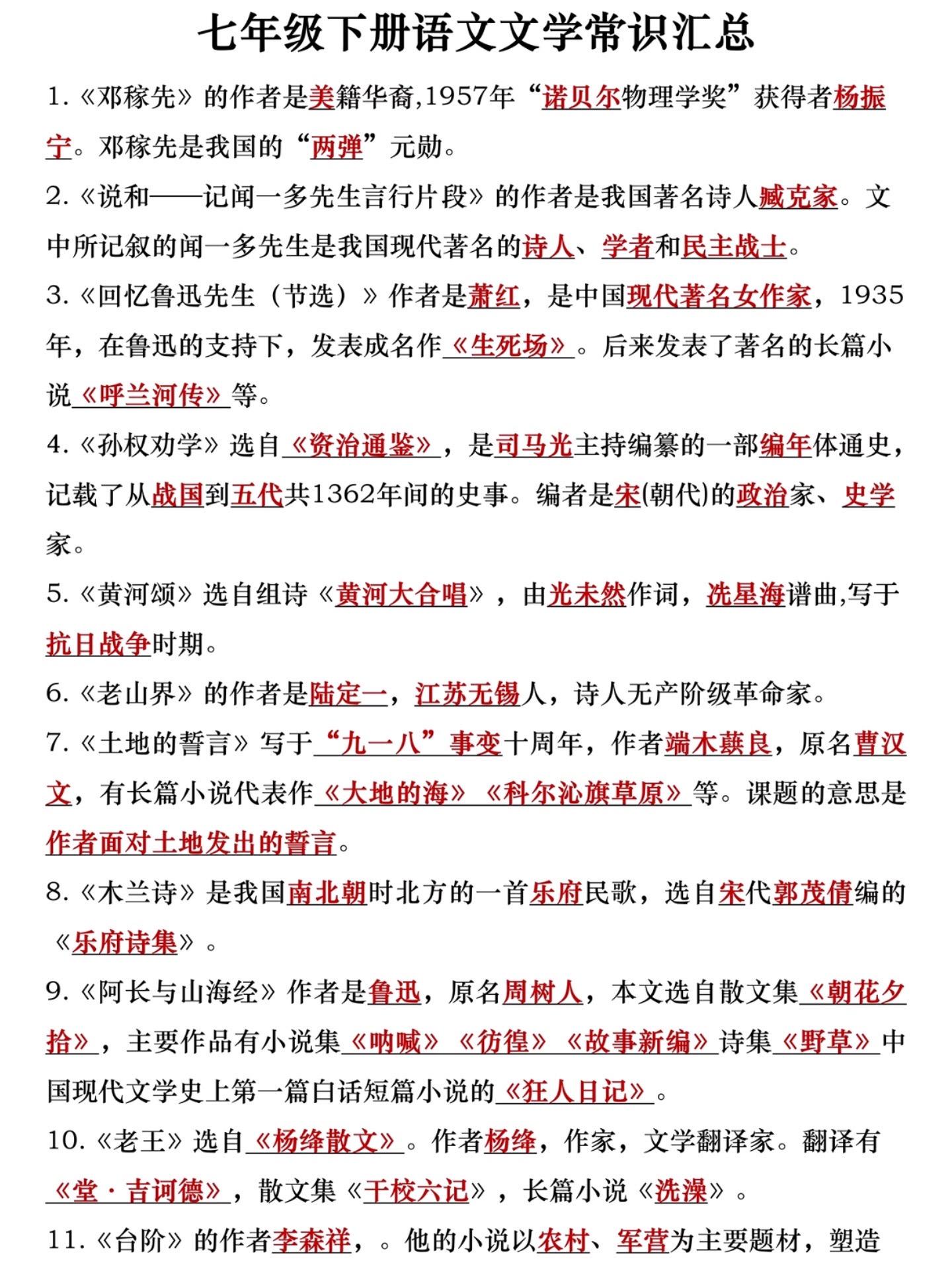 七年级下册语文寒假预习必备知识点汇总。七年级下册语文寒假预习必备知识点...