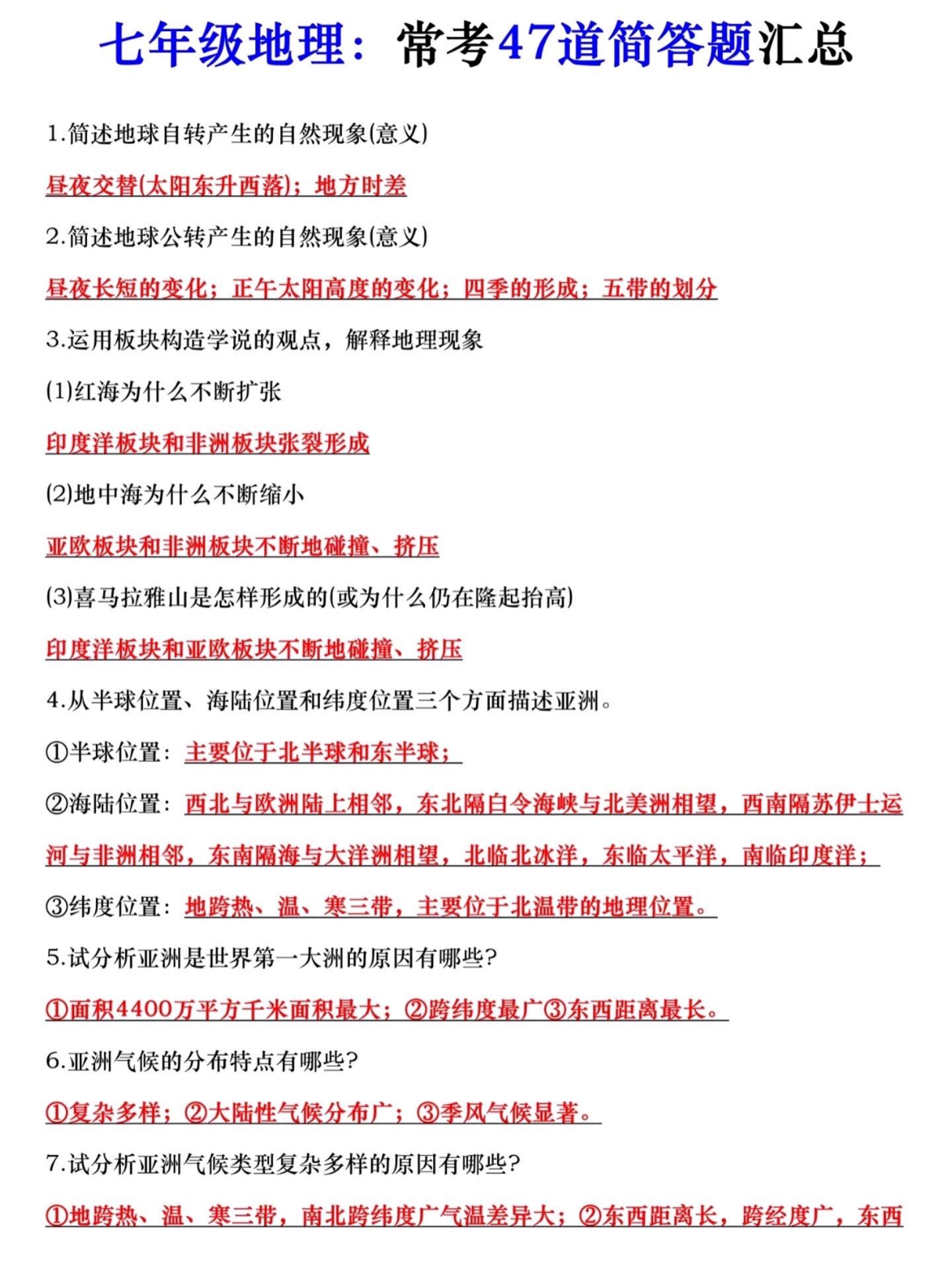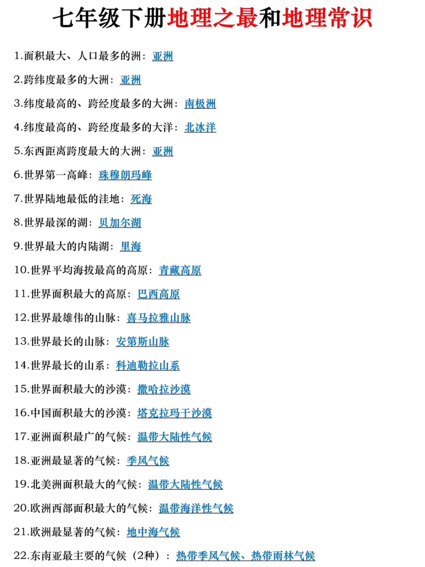 2026年七年级下册地理必背知识点汇总。
