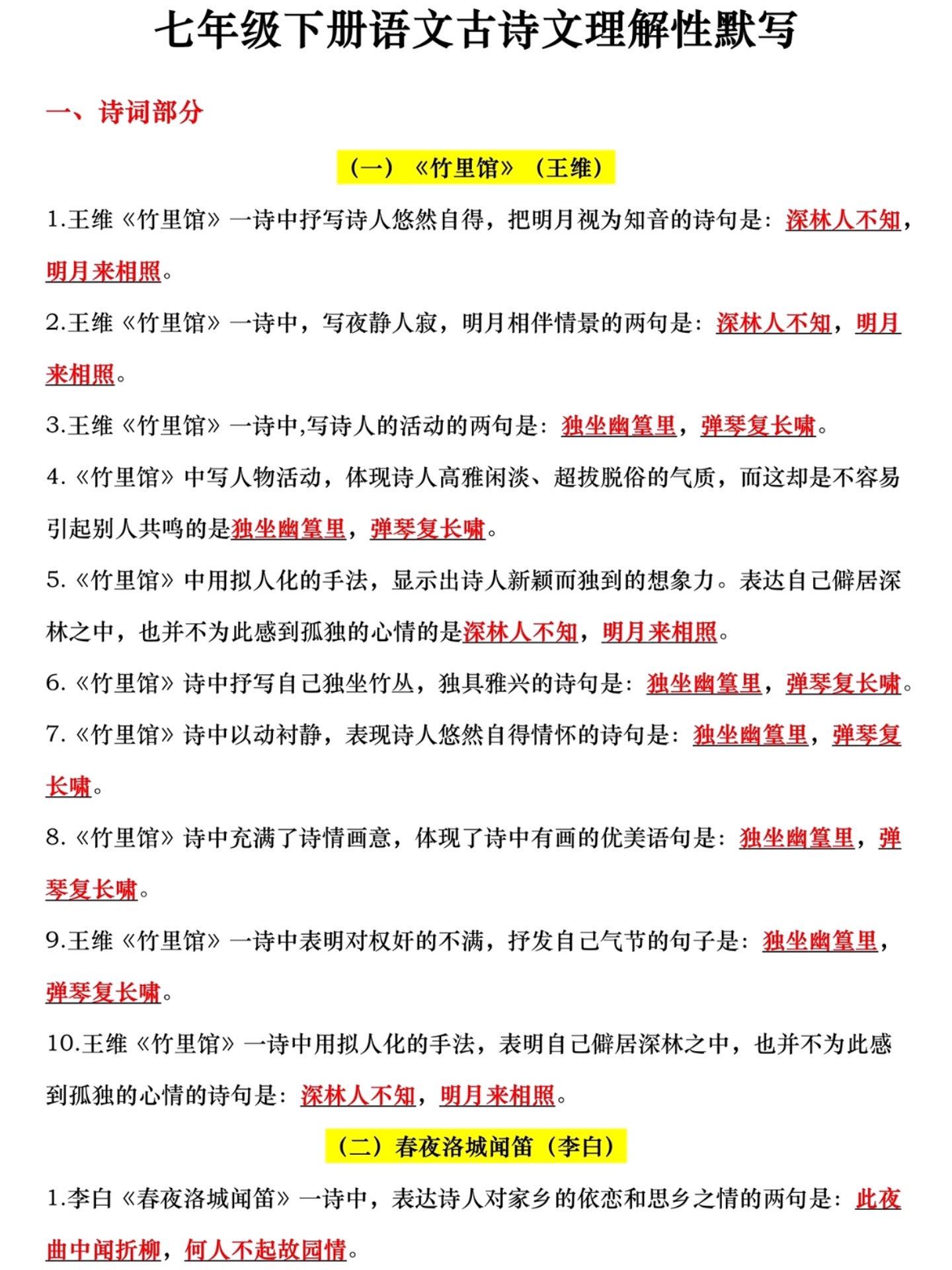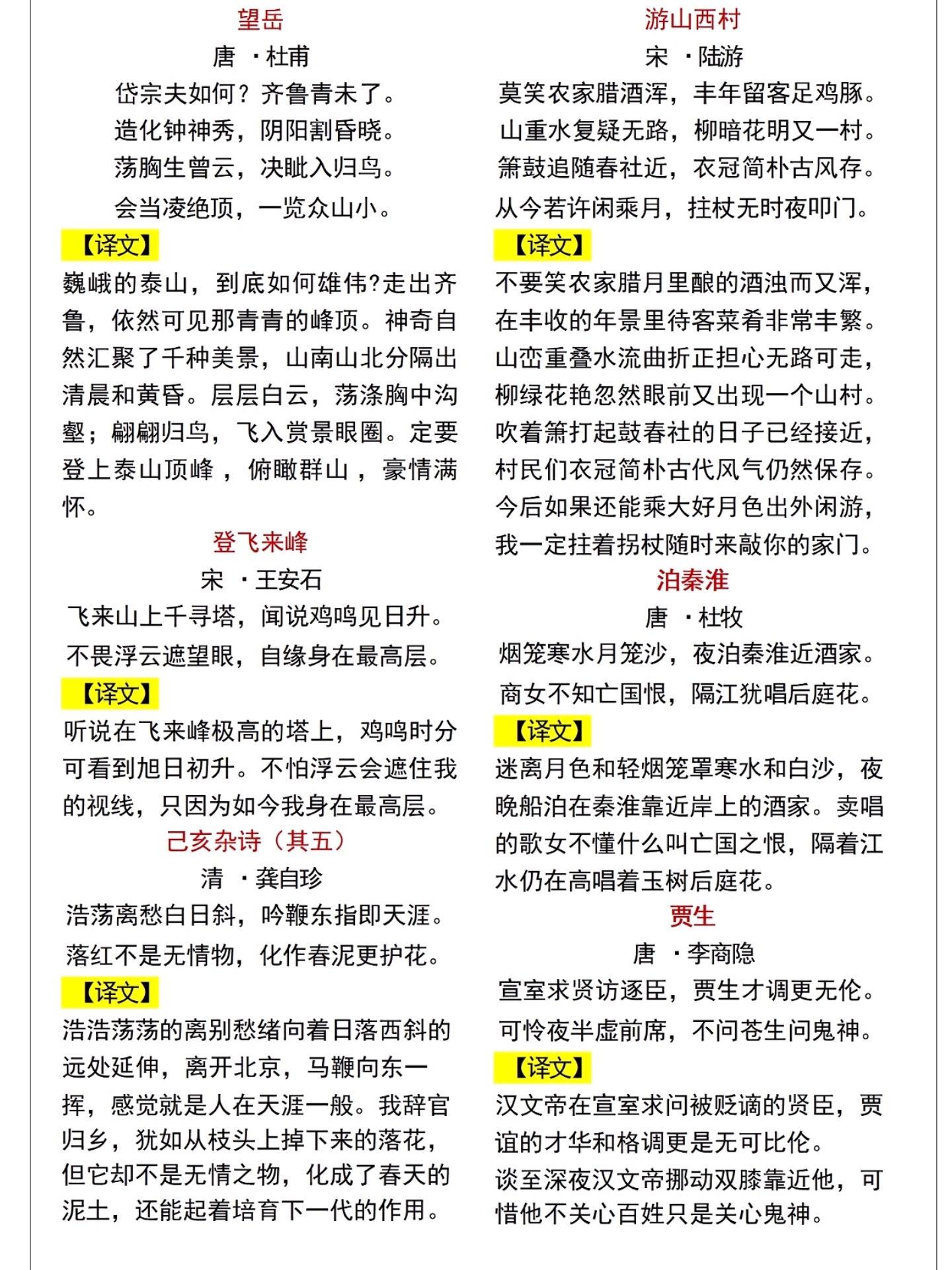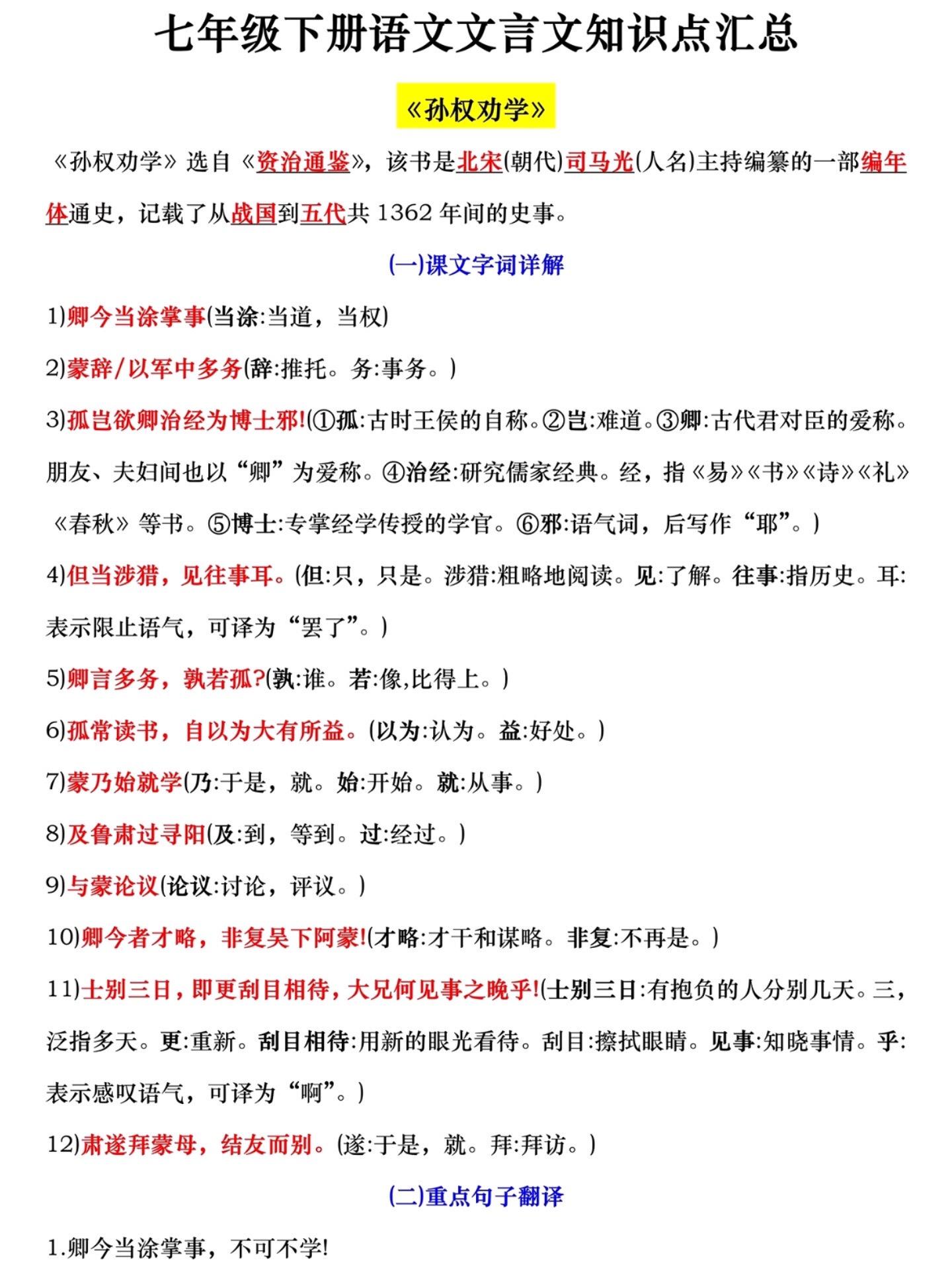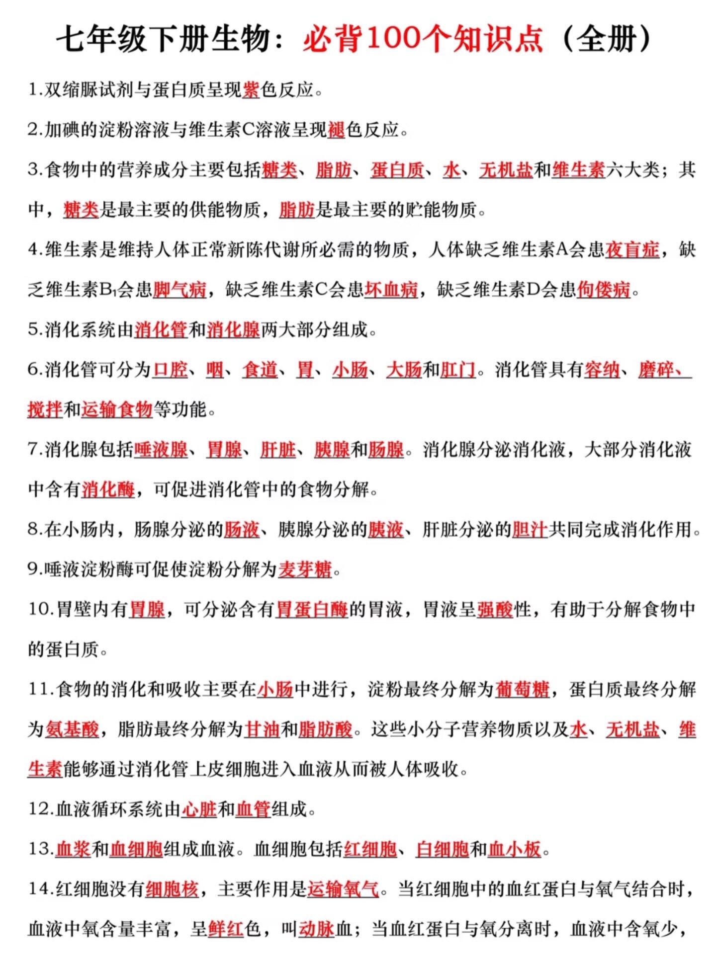 七年级下册小四门重点必背知识点汇总。