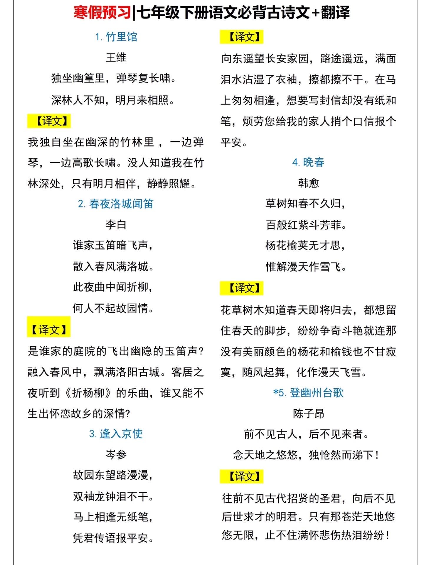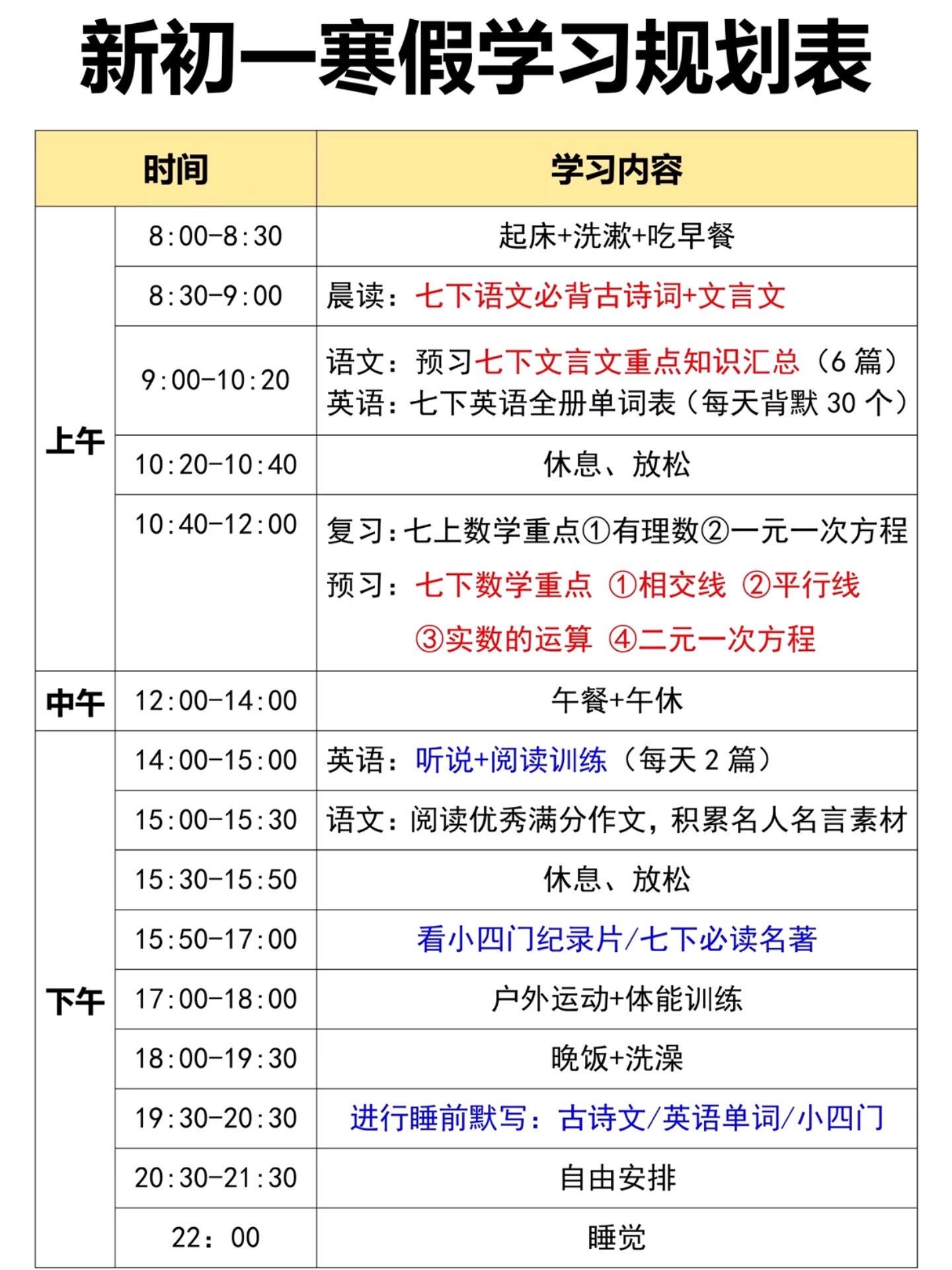 七年级下册语文英语寒假预习安排就这样了。