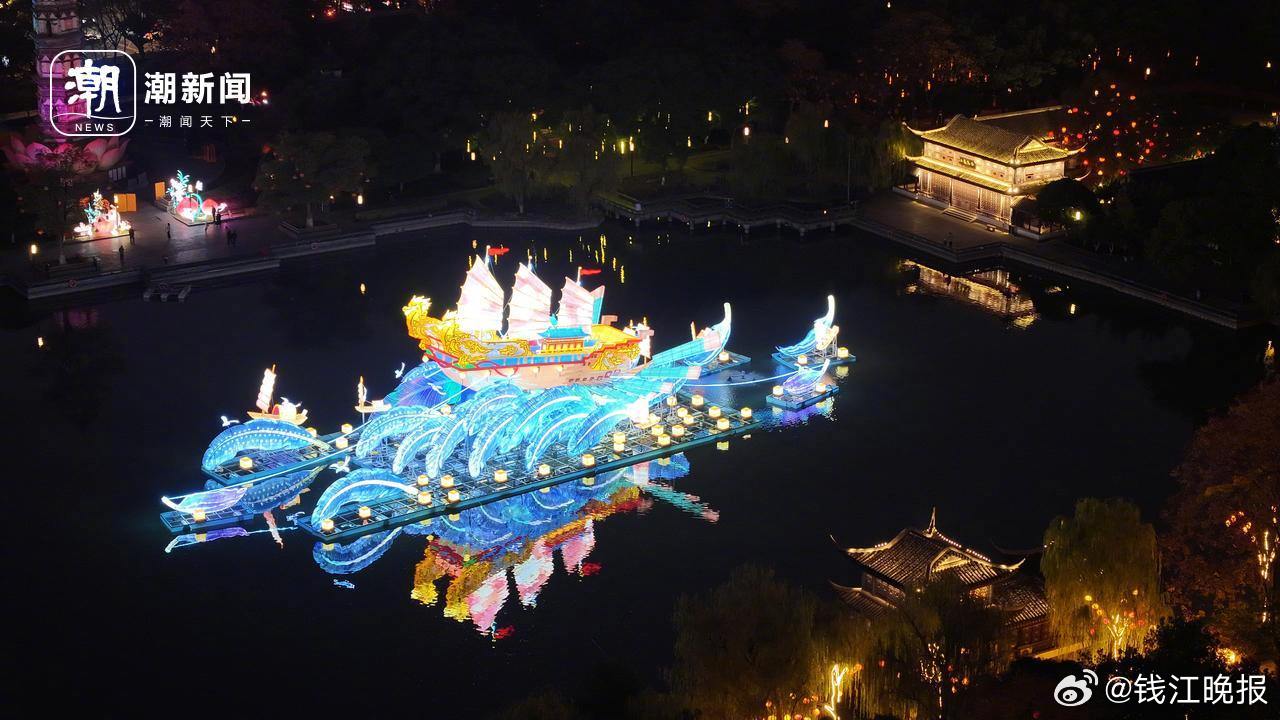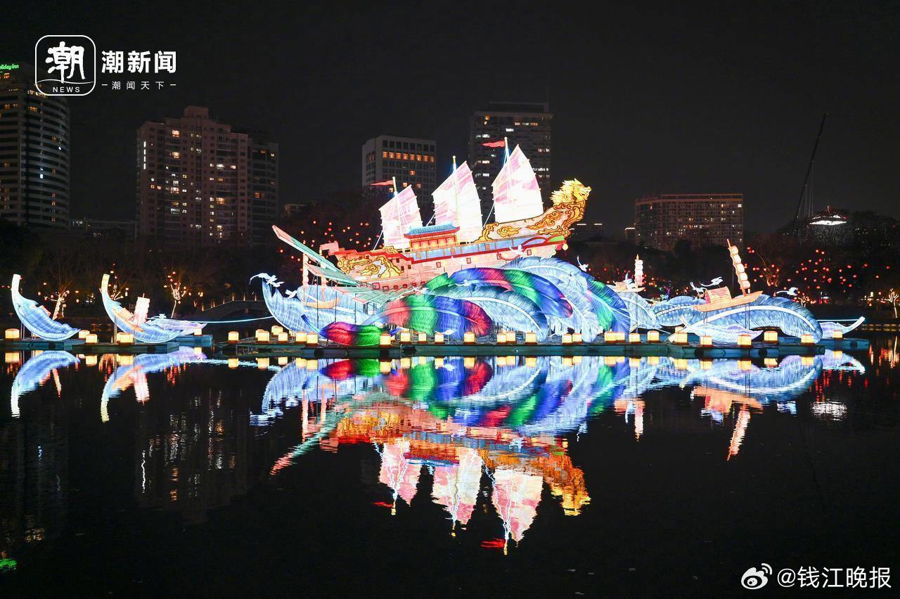 【#春晚分会场焕新义乌#】2026年春晚分会场花落义乌后,整座城市以流光溢彩的新颜迎接新春。城区主干道、绣湖广场等地皆装点起富有巧思的节日景致,夜幕降临,绣湖广场及公园内更是灯光熠熠,多组融入义乌商贸基因与历史人文的彩灯璀璨亮起,与绵延街巷的绯红灯笼相映,勾勒出一幅冷暖交织、错落有致的夜色画卷。#世界超市装进春晚舞台# (潮新闻 记者 董旭明 )