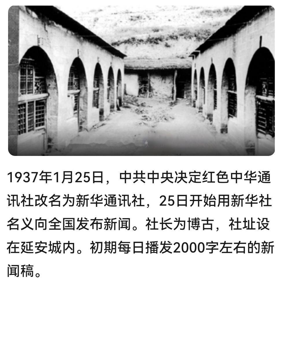#建国丰功伟绩 历史上的今天:1937年1月25日,中共中央决定红色中华通讯社改名为新华通讯社,25日开始用新华社名义向全国发布新闻。社长为博古,社址设在延安城内。初期每日播发2000字左右的新闻稿。