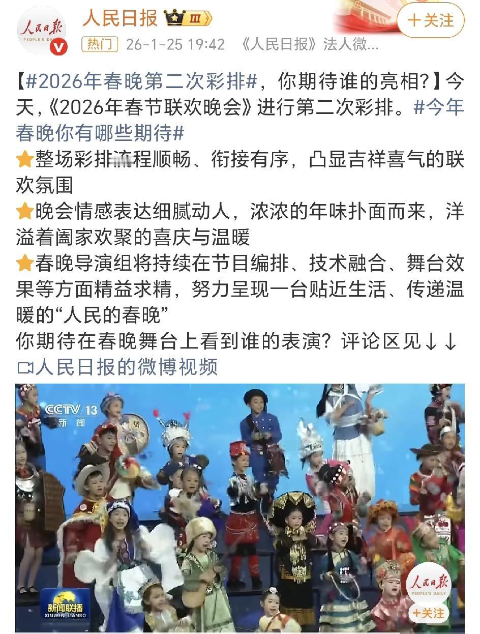 央视春晚第二次联排,又来了好多人哦! 今年的春晚语言类节目会很多吧,这么多的演员和小品类明星。大年三十就是要让大家笑起来,最吸引观众的也就是小品了! 只可惜这几年好的喜剧人太少了,好的小品就更少了!特别怀念以前赵本山,宋丹丹,冯巩,蔡明的压轴舞台! 现在不一样了,演小品的人是真多,能记住的却很少,连周深都去辽宁卫视演小品了,这是人员有多匮乏了[笑哭],看着上妆后的效果还不错啊,跟宋小宝搭戏可太期待了! 央视春晚和和地方卫视春晚加起来一共有十多台晚会,看着眼花缭乱的参演人员,你最期待谁呢?春晚档期
