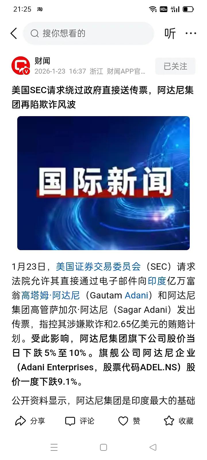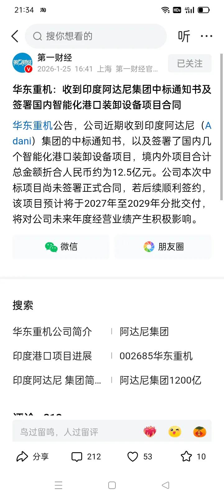 美国美国证券交易委员会起诉印度阿达尼集团领导人涉嫌欺诈和贿赂 华东重机与阿达尼合作,应该先收钱再干活 *前天美国证交会请求法院允许其通过电子邮件直接向印度阿达尼集团首脑及另一个高管发出传票,指控他们涉嫌欺诈和贿赂! *今天中国企业华东重机宣布:近期收到阿达尼集团的中标通知书,以及签署了国内几个智能化港口装卸设备合同,境内外合同金额总计12.5亿人民币! 而本次中标项目尚未签署合同。 据悉华东重机去年的净利润仅为5000万~7000万人民币。