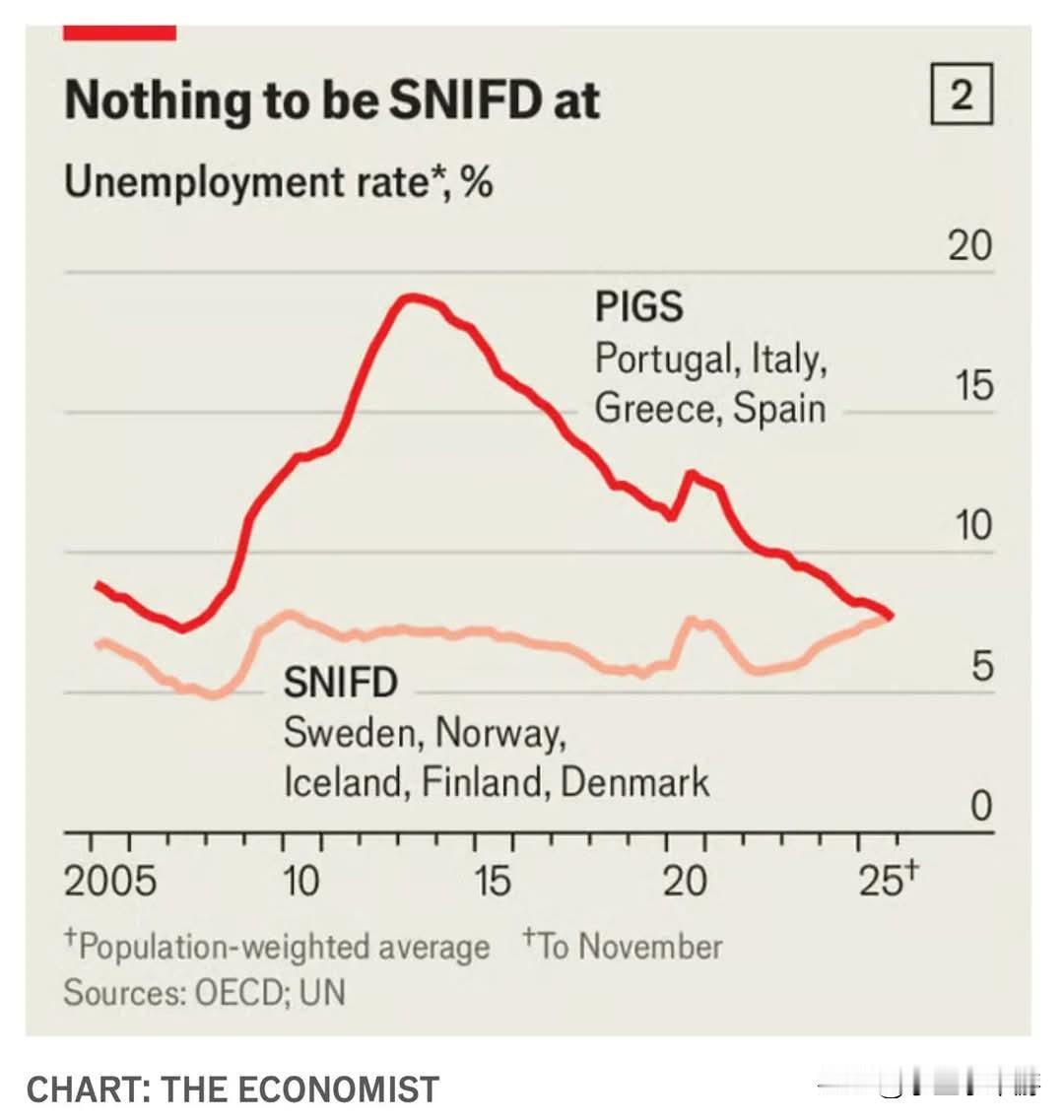 近3年来,富裕国家的就业情况出奇地好,经合组织(OECD)成员国的平均失业率多次创下历史新低,就业人口比例也达到新高。在关税上升、地缘政治紧张、人工智能(AI)对工作构成威胁的背景下,这样的表现十分亮眼。 更特别的是,各国长期以来的就业印象也正在反转:过去爱尔兰失业率高、智利失业率低,如今两国失业率已相差不大;澳大利亚现在比新西兰更不容易失业;哥斯达黎加的失业率也从两位数降至约6%。加拿大近期失业率上升,美国却保持稳定,这些变化都表明各国劳动力市场正在重新洗牌。 变化最大的是南欧地区。2012-2013年欧债危机时,葡萄牙、意大利、希腊、西班牙的失业率接近20%,这几个国家被戏称为“欧猪五国”(PIGS),与工作态度勤勉的北欧国家相比,显得明显落后。 但最新数据显示,这些南欧国家的失业率竟已低于瑞典、挪威、芬兰等北欧国家,希腊的失业率甚至仅剩下约8%,当地旅馆业还在面临用工短缺的问题。 专家认为,教育水平提升、求职平台效率提高、失业补助政策更严格,以及意大利、希腊、西班牙三国推行的劳动力市场改革,都是促成这一变化的原因之一。 (数据源自网络,仅供参考)