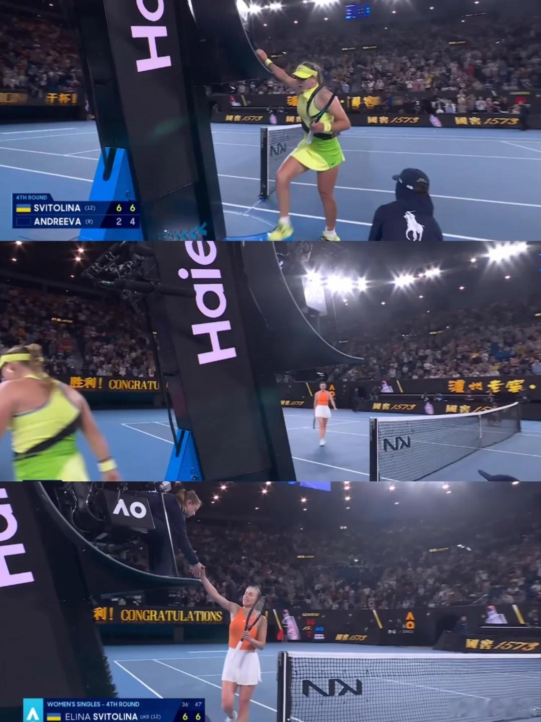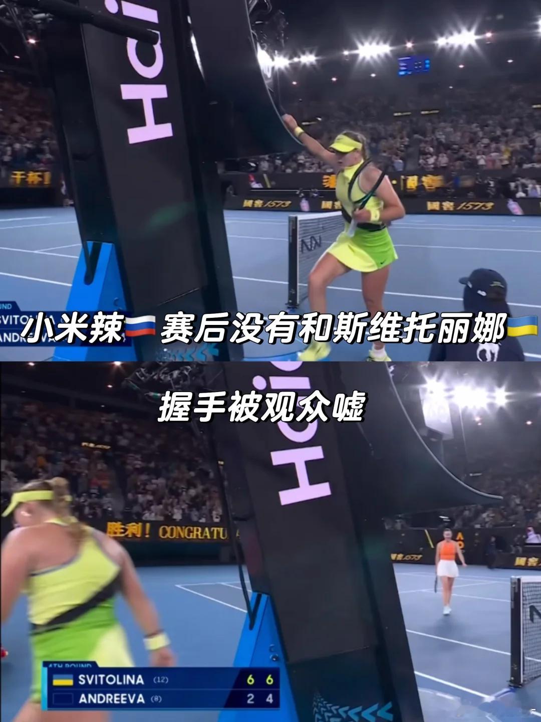 安德列扎?穆古拉娃? 安德列娃不攻不防的,输给了斯维托丽娜。小米辣还是输在心态上,大不了逆风球。情绪控制上比以前好一些,但肢体动作上还是看得出不够积极、跑动不到位。小米辣赛后没有和斯维托丽娜握手,被观众嘘了。嘘什么,她都不跟咱合影。斯维托丽娜新赛季保持九战全胜,职业生涯第四次跻身澳网八强,这也是她第14次打进大满贯八强。接下来对阵高芙。CoCo加油!!!澳网2026wta这很澳网