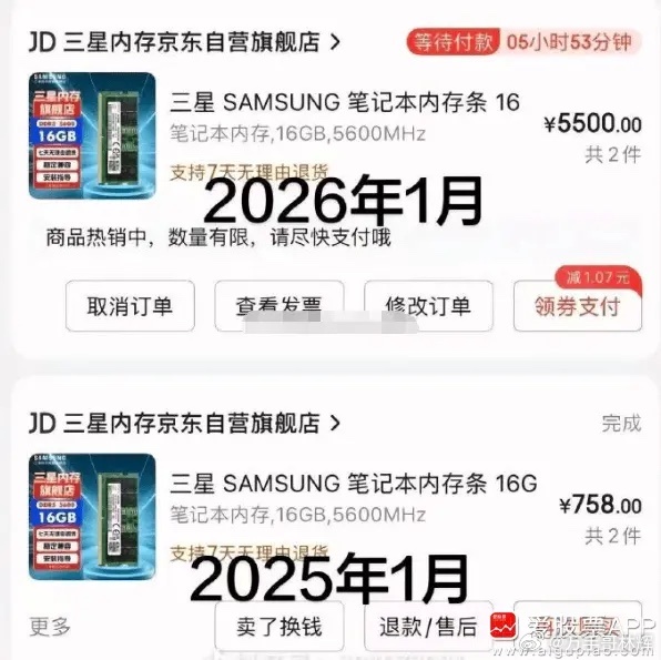 今天看到一个新闻,三星闪存一季度将涨价100%以上,这简直疯了吧!花旗预计,2026年动态随机存取存储器(DRAM)与闪存产品的平均售价或将分别上涨88%、74%,远高于此前预测的53%、44%。这个影响有多大呢?2025年1月份16G的笔记本内存条(2根):758元;2026年1月份:5000元。按照这个涨价速度,今年年底要9000元!这内存条比笔记本还贵了,不知道手机、PC厂商会怎么面对呢。存储芯片、黄金白银现在这种涨法,确实令人瞠目结舌。幸好目前石油和主要农产品还没有涨起来,传导到下游就不是正常通胀了,很可能是恶性通胀!做股民真挺幸福的,甭管有没有赚钱,今年天天都在见证历史啊。