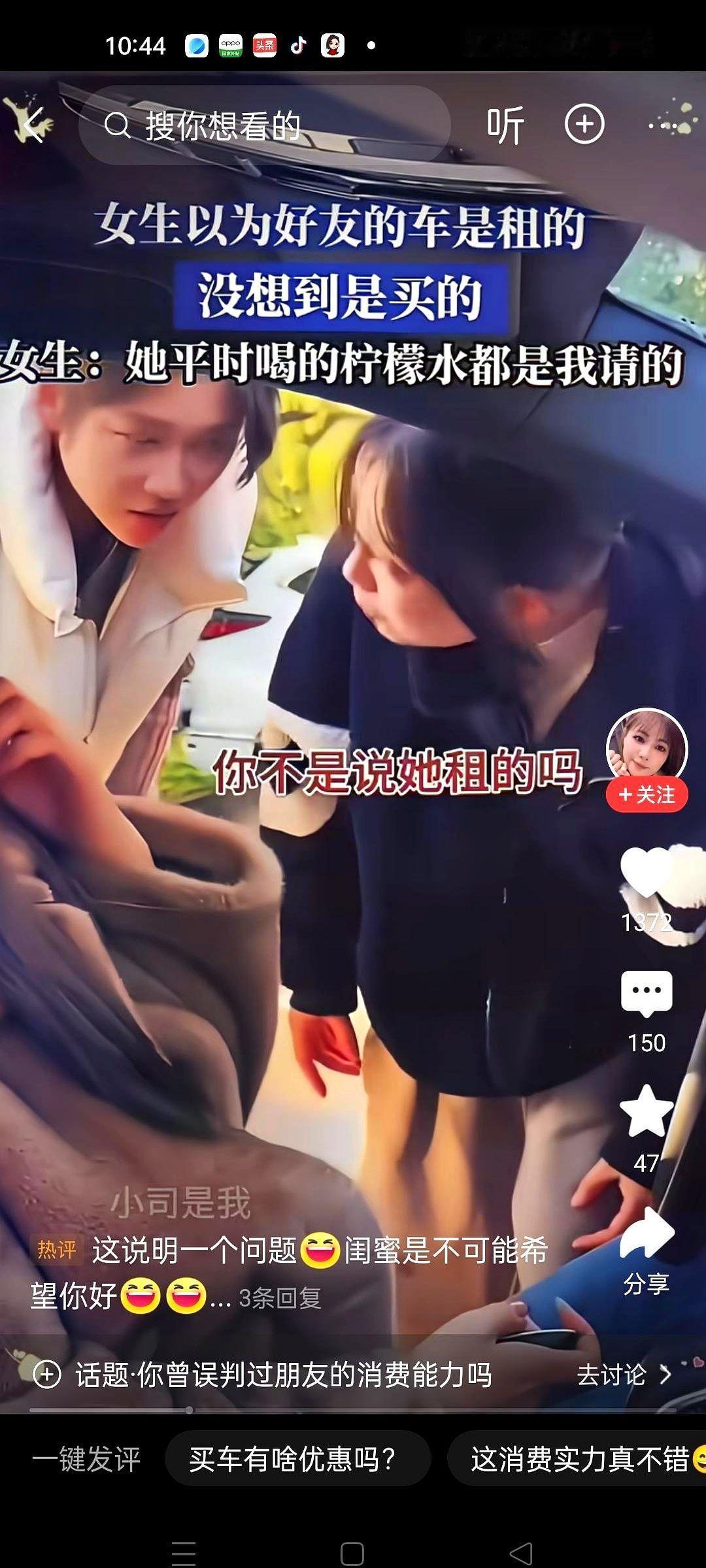 我真的要被我闺蜜笑死,也快被她气死。 她开来一辆保时捷。我们都以为是租的,还很懂事地提醒她,玩够了记得还回去,别超了时间。 结果人家云淡风轻地来一句:我买的呀。 空气安静了三秒。 我跟另一个闺蜜对视一眼,都从对方眼睛里看到了四个大字:你在逗我? 什么玩意儿?你买的??? 那你天天在群里甩链接,喊我给你“砍一刀”?为了那三块两块的红包,让我下了一堆乱七八糟的APP? 你还好意思让我请你喝四块钱一杯的柠檬水? 最绝的是,那柠檬片你都舍不得扔,带回家说明天还能泡一杯!能泡好几天! 好家伙。 我今天算想明白了。 什么叫顶级的会过日子?就是人家开着保时捷,还能心安理得地让你帮她助力领几颗免费鸡蛋。 而我们这种真穷的,出门喝杯三十块的奶茶都得拍照发朋友圈,生怕别人不知道。 真的,我当时就想跟她说,别拿刀砍链接了,来,朝我这儿砍吧。 或者,你干脆开着你的保时捷,从我身上轧过去,也算给我助力了。