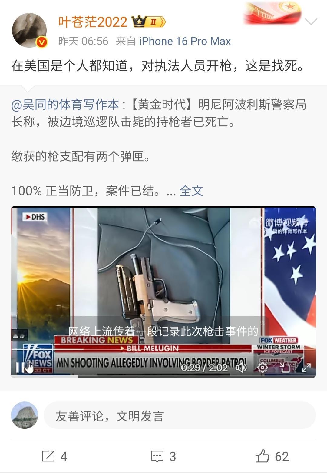 他的名字叫亚历克斯·杰弗里·普雷蒂(Alex Jeffrey Pretti)。是一个医护工作者。在1.24日被ice当街射杀。他是一个合法持枪者,也就是右派言之凿凿誓言要保护的持枪权利。他全程没有拔枪过。普雷蒂见一名女性被执法者推倒,立即上前用身体护住对方;此时他右手持手机拍摄、左手无械,随即被辣椒水直射面部,并转身背对执法者试图躲避与保护该女性。多名执法者迅速将其按倒、压制;一名特工从其腰间枪套取出合法手枪(已缴械);数秒后,另一名特工近距离朝其背部/后脑连开约10枪,致其当场死亡。然后你看看这些川粉是怎么污蔑的。污蔑他对执法人员开枪。再看看其中的一条博文。仅仅因为自己不喜的一些所谓白左的理念,给一个导致了乌克兰俄罗斯上百万死亡绑架了两万多儿童无数次轰炸超市幼儿园的战犯唱赞歌。仅仅因为自己不喜欢的一种左派价值。最重要的大是大非抛弃在一边。这是一种何等的扭曲。 所以如今川普竭尽全力动用一切公权力阻挡爱泼斯坦档案的公开,阻止那些受害者找回公道,竭尽全力的庇护那些位高权重的恋童癖罪犯。在这些铁杆川粉眼中,何等的不屑一顾了。 这是一种令人发指的狂热,更是一种世所罕见的冷漠。 这里面的几个博主,因为一些所谓的保守主义理念我和他们互关过。不得不说,我深感耻辱。 这些人和真正保守主义相去甚远。真正保守主义是坚守人类被历史反复证实和被人类捍卫的优秀价值的。比如,捍卫正义,绝非助纣为虐。比如真诚公正,绝不是谎话连篇。更绝不会恃强凌弱。保守主义者,一定知羞耻,守原则,重承诺。