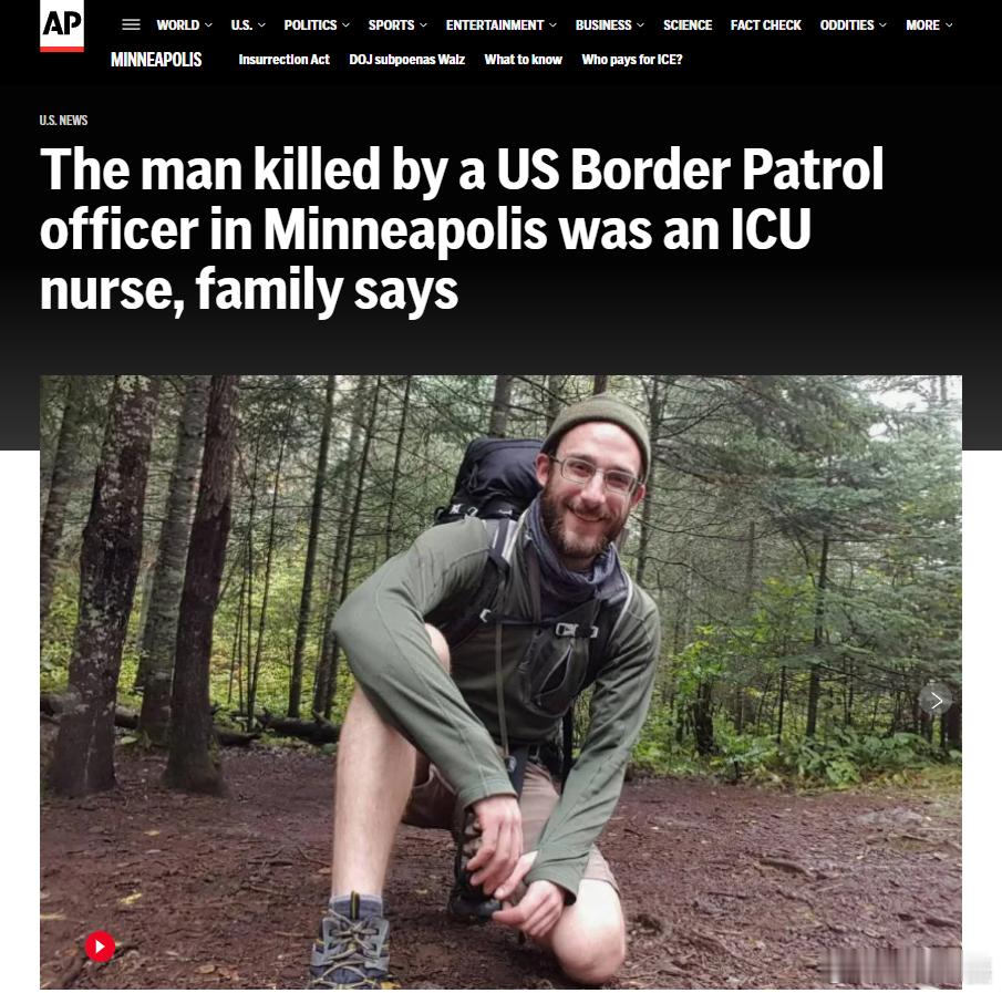 美联社的报道:Alex Jeffrey Pretti,现年 37 岁,是一名酷爱户外运动的人,喜欢和他心爱的卡塔霍拉豹犬Joule一起冒险(这只狗近期也已去世)。他在美国退伍军人事务部工作。此前,在1 月7日发生Renee Good被移民海关执法局(ICE)官员杀害的事件后,他曾参加过抗议活动。“他非常关心他人,对明尼阿波利斯乃至全美境内 ICE 的所作所为感到非常难过,成千上万的人也同样感到愤怒,”Alex的父亲Michael Pretti说道,“他认为这很可怕,比如绑架儿童、在大街上随便抓人。他同情那些人,知道那是错误的,所以他参加了抗议。”Pretti是出生在伊利诺伊州的美国公民。法庭记录显示,他与Good一样没有犯罪记录。家属表示,除了几张交通罚单外,他从未与执法部门有过任何冲突。Alex Pretti 的父母住在科罗拉多州,在最近的一次谈话中,他们曾叮嘱他在参加抗议时要小心。“大约两周前我们还谈过,告诉他抗议可以,但不要卷入冲突,基本上就是别做傻事,Michael Pretti说,“他说他明白,他心里有数。”美国国土安全部表示,该男子在持9毫米半自动手枪“接近”边境巡逻队官员后被射杀。官方并未明确Pretti是否曾挥舞枪支。在随后出现的旁观者拍摄的视频中,可以看到Pretti手里拿着手机,但没有任何视频显示他持有可见武器。家属称,Pretti拥有一把手枪,并在明尼苏达州持有隐蔽持枪证,但他们从未见过他随身携带武器。家属最早是从一名美联社记者的电话中得知此事的。他们在看到视频后,认为视频中被杀的男子看起来像他们的儿子,随后便尝试联系明尼苏达州官方。“我从任何地方都得不到消息,”Michael Pretti在周六表示,“警察让我们打给边境巡逻队,边境巡逻队下班了,医院也不回答任何问题。”最终,父母联系了亨内平县法医办公室,法医确认接收了一具姓名和特征都与他们儿子相符的遗体。截至周六晚间,家属称仍未接到任何联邦执法机构关于其儿子死讯的正式通知。在看到川普政府高级官员暗示其儿子是袭击执法人员的“国内恐怖分子”的视频后,家属发表了一份书面声明,表达了内心的悲痛与愤怒。“政府关于我们儿子的那些恶毒谎言是可耻且令人厌恶的,”声明中写道。他们补充说,视频显示 Alex Pretti 在被联邦特工扑倒时手里并没有拿枪,而是一手拿着手机,另一手在保护一名正被喷射辣椒喷雾的女性。“请公布关于我儿子的真相。他是个好人,”家属说道。Alex Pretti住在离事发地约 2 英里(3.2 公里)的一栋四单元公寓里。邻居们形容他安静且热心。“他是个极好的人,”住在Pretti楼下的Sue Gitar说,“他有一颗善良的心。”如果社区里出现可疑情况,或者大家担心楼内有煤气泄漏,他总会主动帮忙。Pretti独自居住,作为护士工作时间很长,但他并不是个孤僻的人,偶尔会邀请朋友来家里。邻居们知道他有枪——他偶尔会带着步枪去靶场射击——但对于他会随身带枪上街的想法感到惊讶。“我从未觉得他是个会带枪出门的人,”Gitar说道。Pretti还曾是一名自行车赛手,对他的那辆奥迪车爱护有加。他与一年前去世的爱犬感情极其深厚。他的父母说,他们最后一次和儿子交流是在他去世的前两天。他们聊到了他家车库门的维修工作。维修工是一名拉美裔男子,鉴于明尼阿波利斯当时发生的一切,Pretti给了那个人100美元的小费。Pretti的母亲说,她的儿子非常关心国家的走向,尤其是川普政府对环境监管的削弱 。“他讨厌人们破坏土地,”Susan Pretti说道,“他是个户外运动者,无论去哪都带着狗。他深爱这个国家,但他讨厌人们对这个国家所做的一切。”美又一居民遭联邦执法人员枪击身亡海外新鲜事黄媒不会说的真相