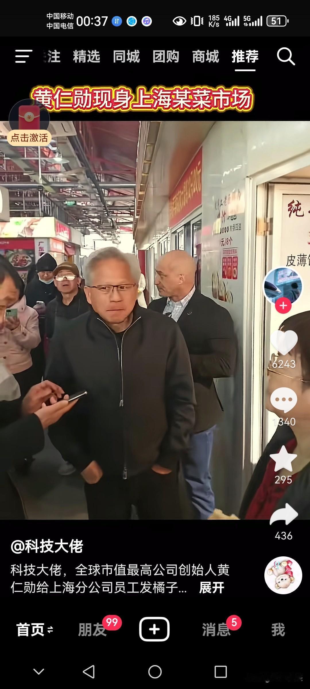 大家看看,这是哪位大佬,走位这么拽,双手插兜,盛气凌人的姿态! 一副桀骜不驯的姿态! 原来是科技大佬,全球市值最高的英伟达公司创始人黄仁勋! 确实有实力,全球富豪排行榜第九,身价高达1550亿美元! 截至目前英伟达的市值4.6万亿美元! 黄仁勋去菜市场买水果,买了糖炒板栗,还给糖炒板栗商铺老板娘包了600人民币的红包! 科技大佬人情世故这一块还是做的很到位,很亲民!黄仁勋 英伟达 英伟达股价行情 黄仁勋定律