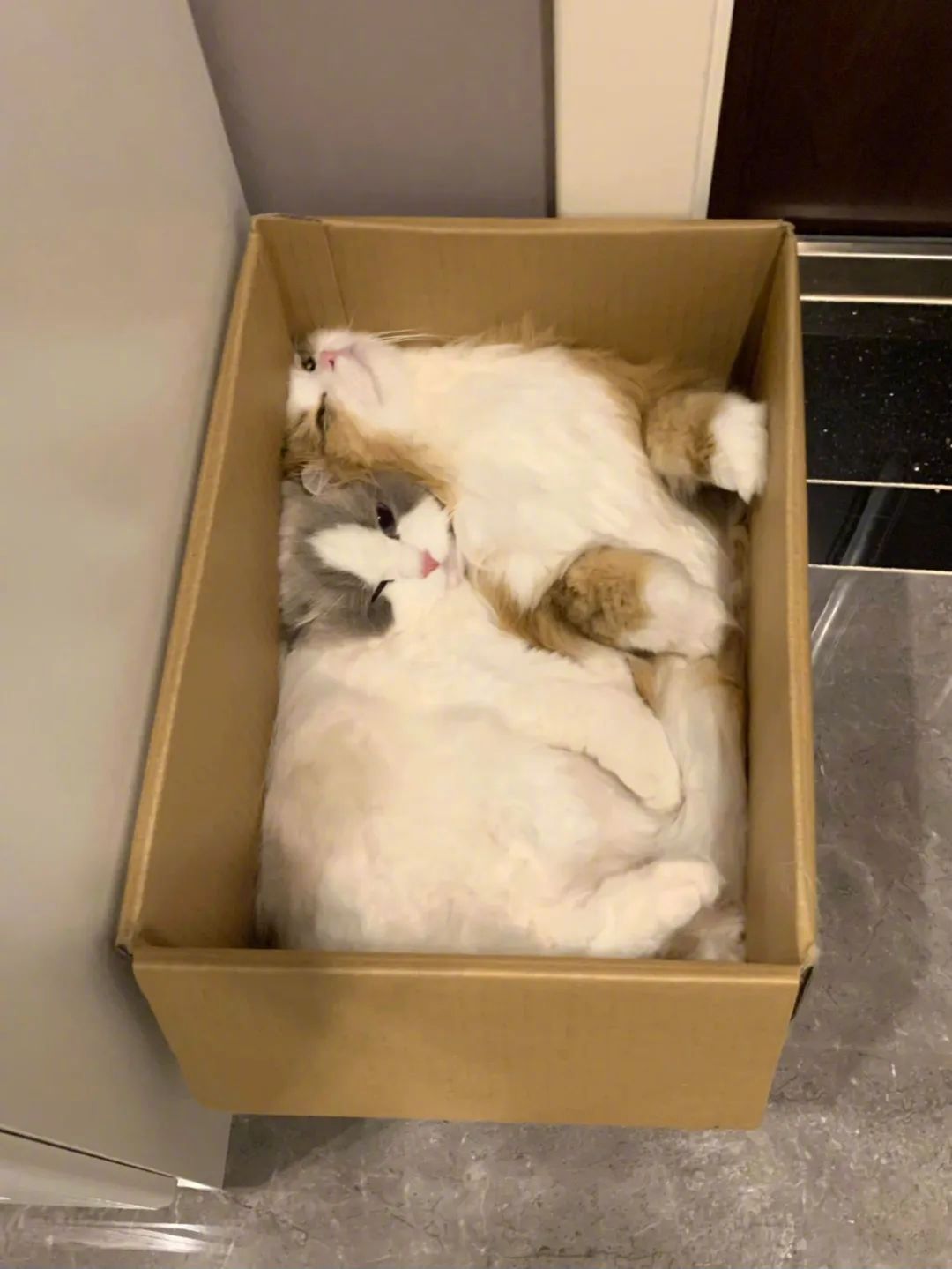 猫咪的心思都写在脸上了两只猫猫非要挤在一个箱子!