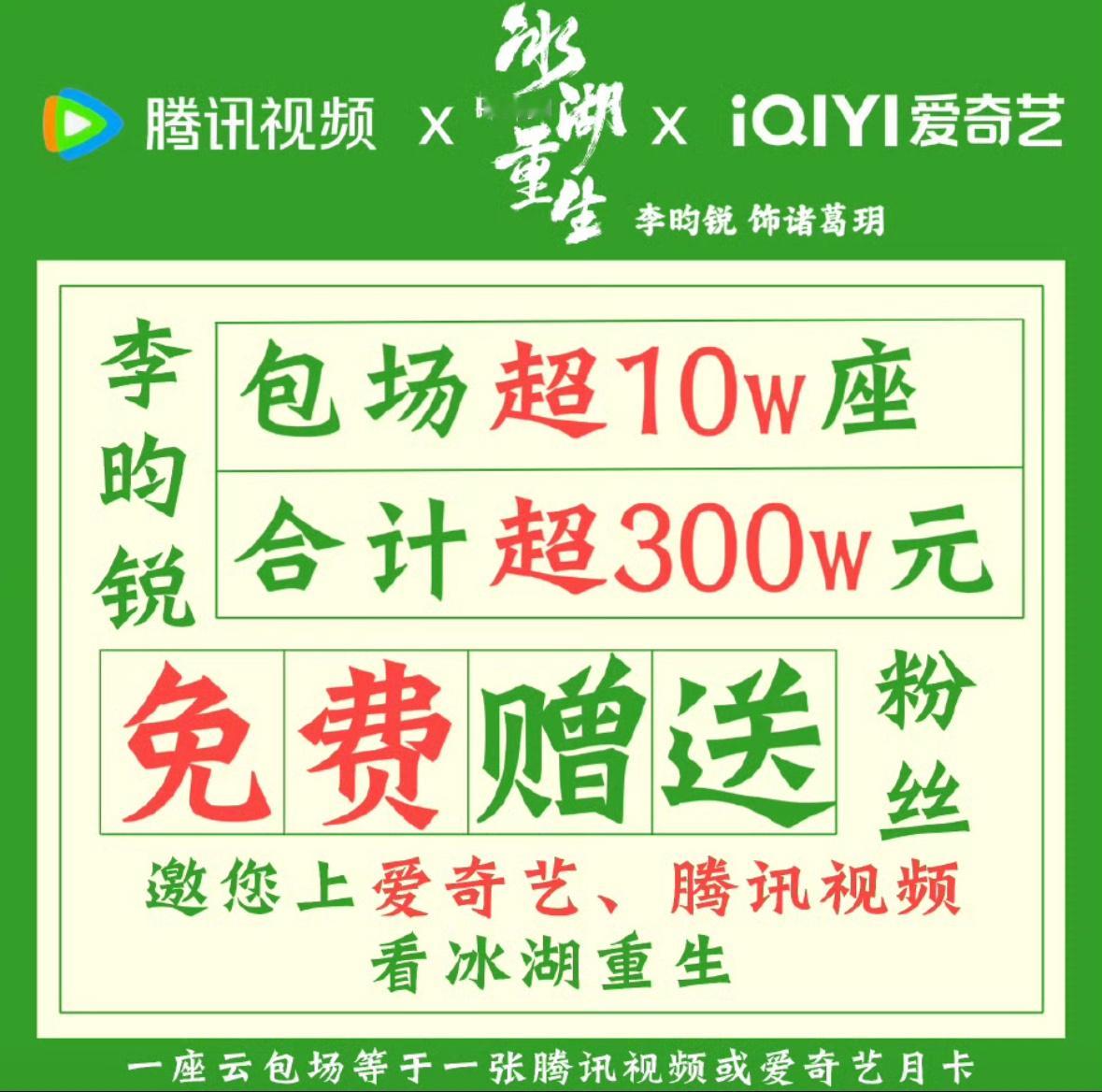 李昀锐粉丝为冰湖重生准备了10w云包场!小森林好大气!