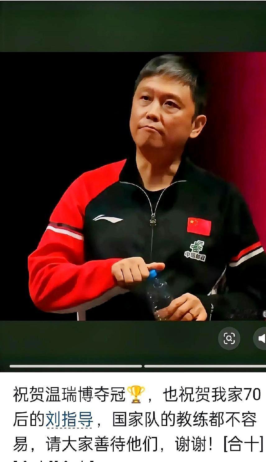 19岁首冠,决胜局救3赛点 3比0被追平,再落后赛点,很多人以为温瑞博要崩。他偏在9比10时连拿3分,14比12锁住冠军。整场75分钟,球台边白发最多的不是选手,是主管教练刘志强。 国乒上次收4冠1亚,男单却最悬。小温一路打掉雨果、约奇克,决赛再擒弗朗西斯卡,排名从50外蹿进前30。年轻人捅破第一层窗户纸,教练组先松半口气。 镜头扫过,刘志强攥着毛巾,眼袋比球还大。牛剑锋发图:老公两鬓又白一层。赢球背后,是教练每天陪练到凌晨,心率飙到180,比队员还先缺氧。 竞技体育只看结果,过程得自己吞。下一次输球,骂声照样来。今晚先让他睡个整觉,明早五点球馆照旧开灯。年轻的路刚起头,教练的头发估计撑不到巴黎。