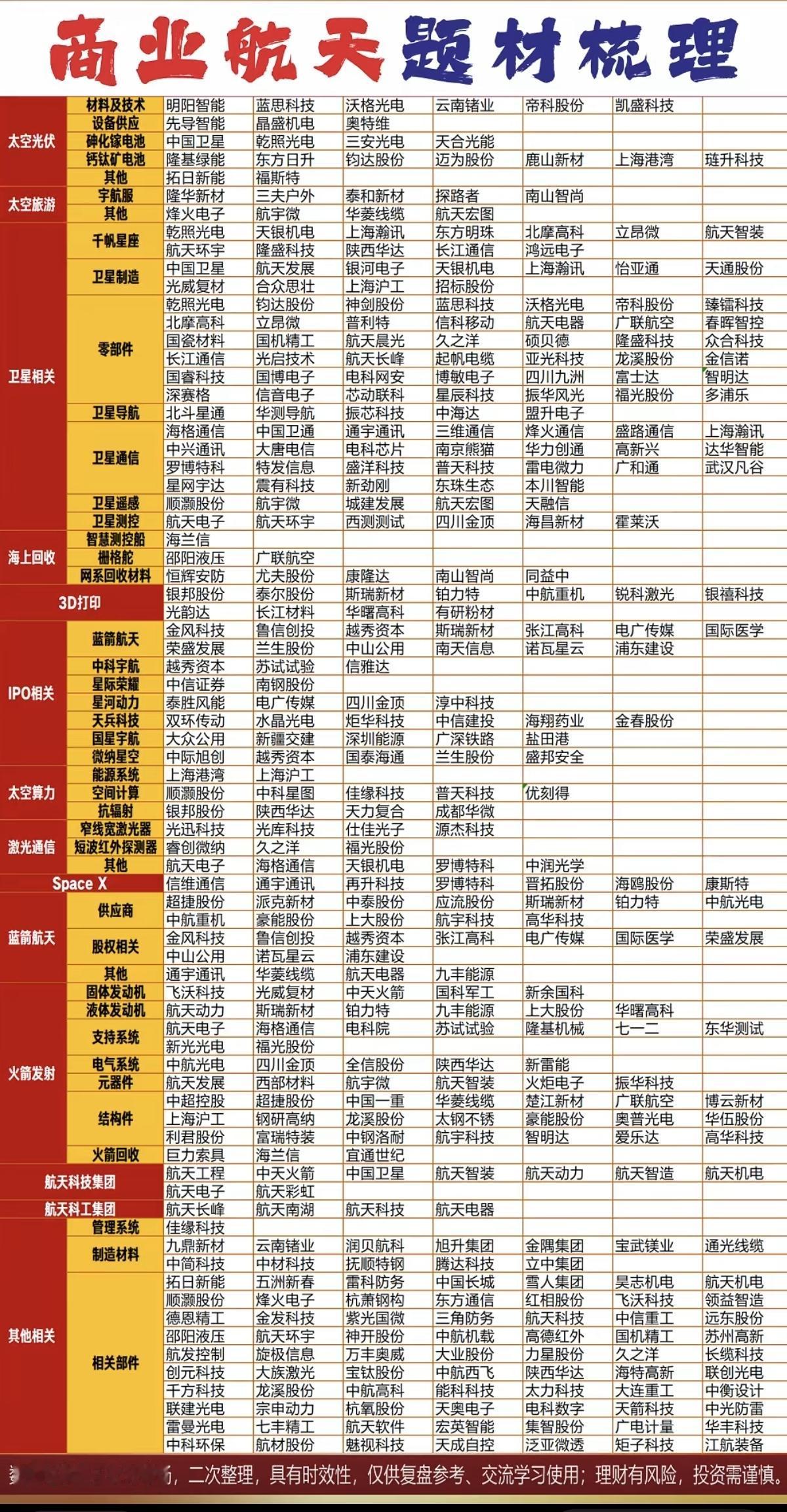 商业航天:全景图梳理! 1.太空光伏 2.太空旅游 3.卫星相关,海上回收 4.太空算力,火箭发射 5.激光通信