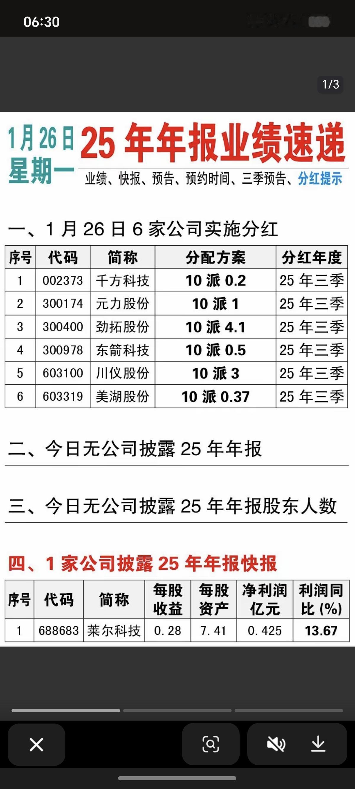 1.26周一 最新:25年度年报业绩预告! 5家公司实施分红 1家披露年报 23家公司披露年报业绩预告