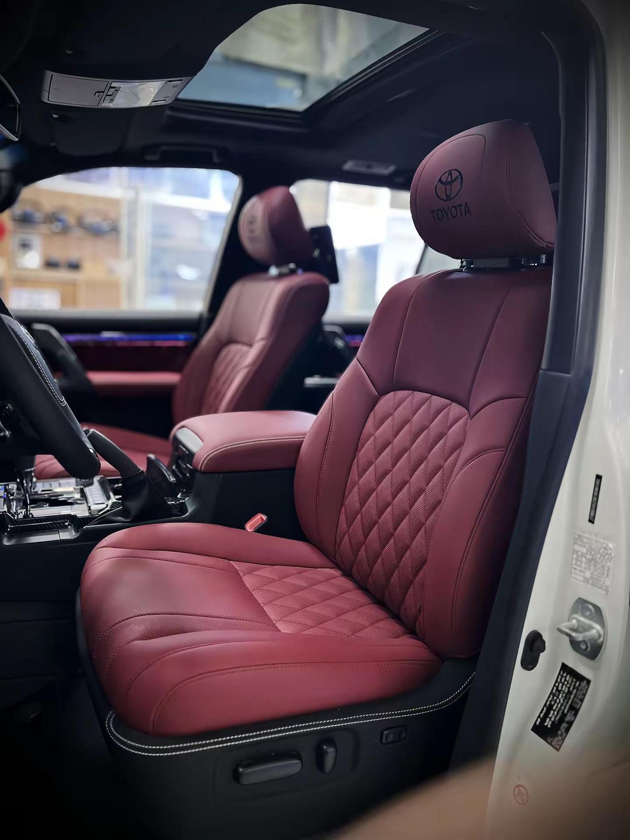 米色内饰的丰田兰德酷路泽,改黑红内饰。汽车文化改装内饰翻新丰田兰德酷路泽