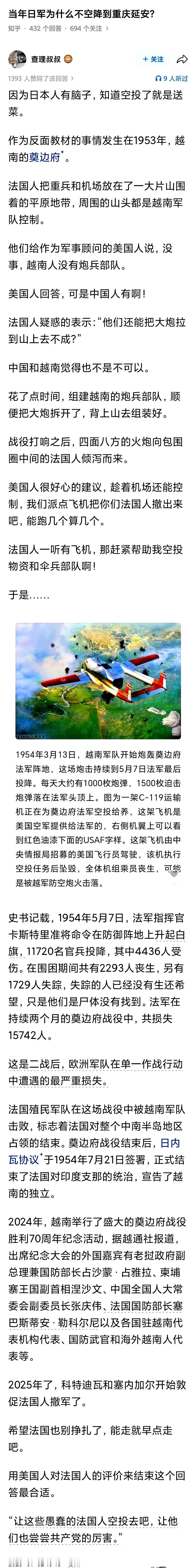 聊聊奠边府战役,法国人是怎么把一手好牌打得稀烂的。 战前,法军指挥官叼着雪茄,拿望远镜扫视着光秃秃的山头,嘴角挂着一丝轻蔑。在他眼里,这片越南山谷就是个完美的屠宰场,是为越盟游击队准备的。空运来的精锐外籍军团,擦拭着武器,跟在非洲殖民地时一样,等着一场轻松的“镇压”。 他们就等着对方冲锋。 但越南将军武元甲,也在等。他等的,是藏在山里的大炮发出第一声怒吼。 法国人的剧本里,根本没有这一幕。他们笃定,越南人靠人力和骡子,绝不可能把重炮拖进这片原始丛林。这是他们用几十年殖民战争经验得出的“铁律”。然而,就在他们头顶的那些山坡上,成千上万的越南士兵,早已把一门门大炮拆成零件,硬生生扛了上来,在密林里重新组装,炮口像黑洞一样,悄悄对准了谷底。 第一颗炮弹落地时,法军阵地咖啡馆里的杯子只是晃了一下。紧接着,是第二颗,第三颗,地动山摇。机场跑道被炸成碎片,补给线瞬间被切断。法军指挥官冲出帐篷,抓起望远镜,之前那片“光秃秃”的山头,此刻火光四射,仿佛整片丛林都活了过来,要将他们生吞活剥。 最讽刺的是什么?这事发生在1954年。 就在一年前,朝鲜战争刚停火。美国人在上甘岭,用血肉之躯结结实实地领教过这种“人海+炮火”的战术有多恐怖。当时在越南的美国顾问,看到法军这个部署,估计气得直接把地图摔在了桌上:我们刚从那个坑里爬出来,你们怎么又自己跳进去了? 说到底,路径依赖就是这么回事。用惯了的锤子,看什么都像是钉子,直到一头撞上钢板。 有意思的是,就在前不久,越南搞奠边府70周年大阅兵,那动静,愣是被一个叫“胖猫”的网红小伙给压了下去。一场改变世界格局的血战,还不如一段感情纠纷有流量。 只能说,时代真的不一样了。