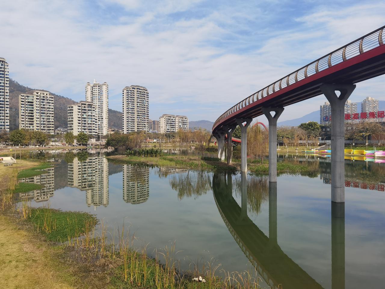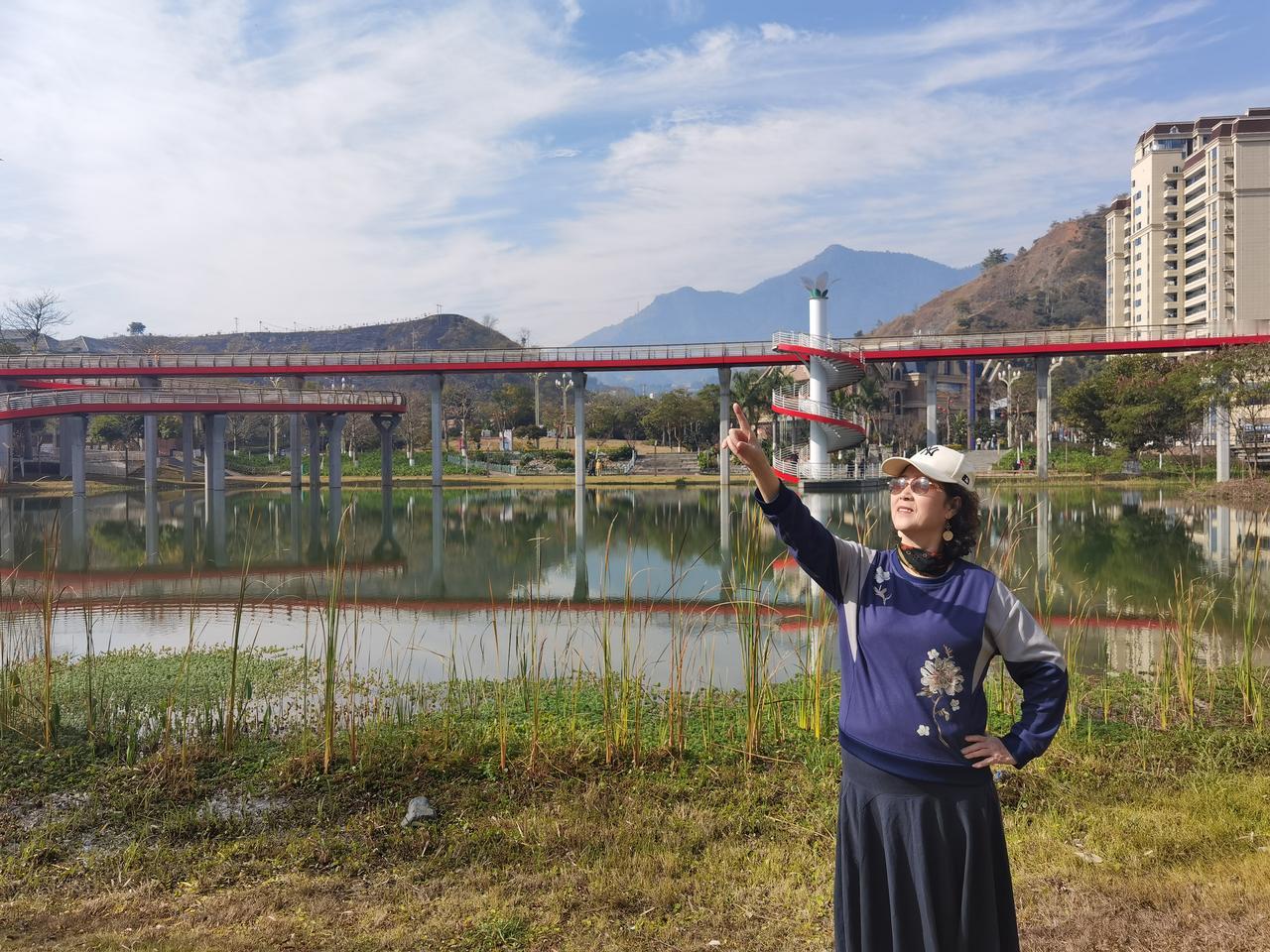 漫步湿地公园,邂逅自然韵律 米易,24度的艳阳高照,让人迈入了春意盎然的春天里。 严冬时节,当北方冰天雪地室内开着暖气,而攀枝花米易却是绿意葱葱,花开娇艳欲滴。 上午我们来到城南生态湿地公园。公园是一处集自然生态与人文景观于一体的休闲胜地。 来到公园,阳光明媚,湖面波光粼粼,宛如一面明镜倒映着山色。映照着蓝天白云与远处的山峦,如诗如画。 我穿着T恤衫和裙子漫步其间,见花儿开得娇艳,便高兴的与花拍照留念。碧水与暖阳交织成了别样的温柔,我好喜欢。 公园草坪上洒满金色阳光,我坐在草地上任暖风轻拂,感受大自然温暖的拥抱。 湿地公园步道蜿蜒于绿道间,我迎着暖阳,每一步都踏在诗情画意里,心情爽朗朗……[赞][玫瑰][福][大笑][彩虹]