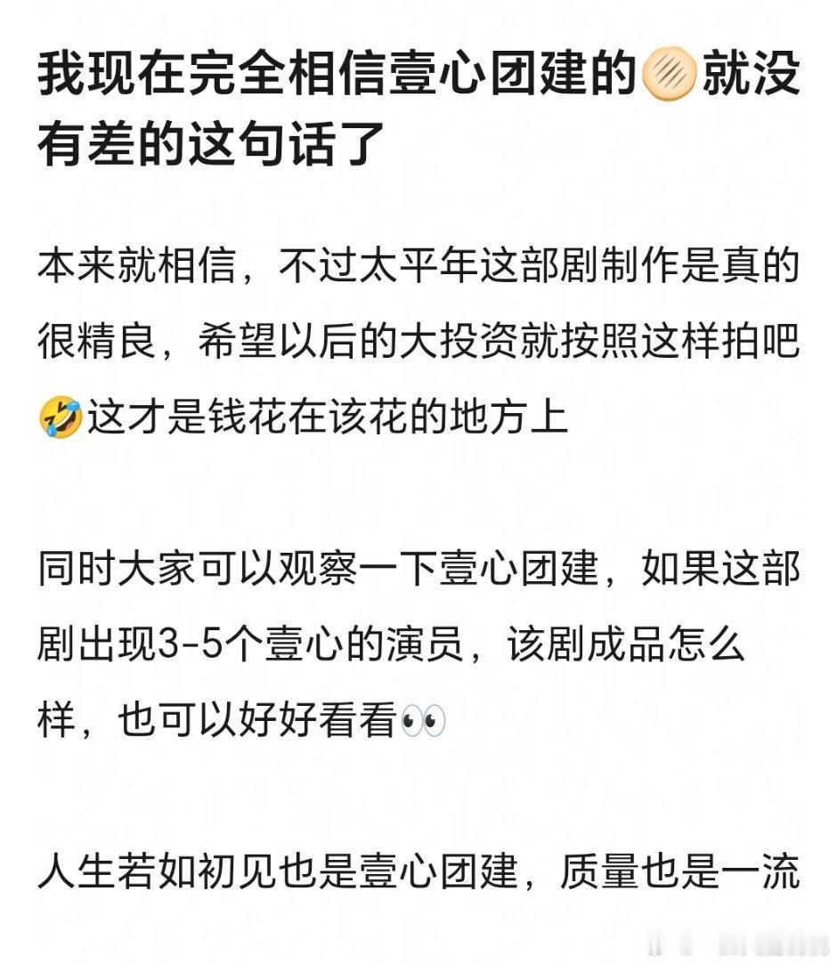 一心目前团建的🫓人生和⚖️,不用说都知道都团建了班底肯定强,而且杨磊的效率很高太平年50集大剧周期从24年10.27-25.1.28才拍了三个月,下部可以再观察一下一❤️团建的🫓是啥