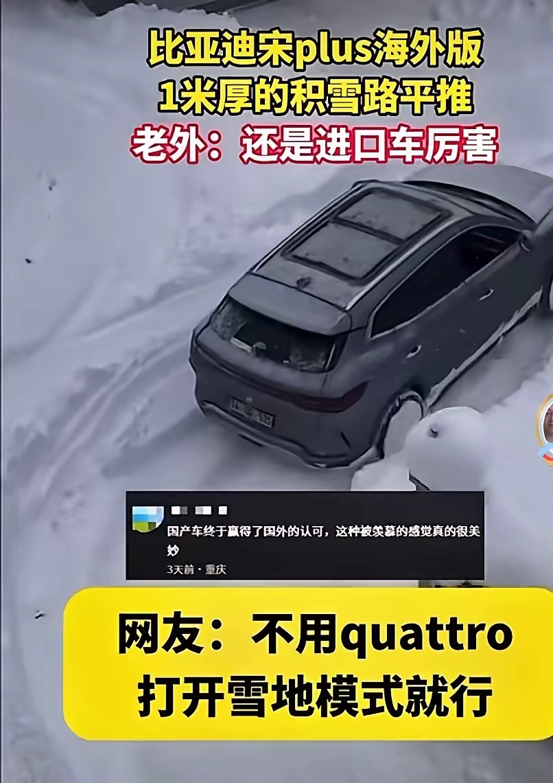 华为“停手?”不对,是比亚迪“住手吧!”这次堪称全球级别的“伤害性不大,侮辱性极强!”一个雪地模式,就把一众“高高在上的排面车”按在地上摩擦。所以说,真技术从来不是靠吹捧得来的,而是在现实面前,能直接让人看得亮眼发光!更厉害的是,比亚迪在欧洲市场售价比BBA还高,关键是外国人还抢着要。国内那些看不上国产车的,该好好想想该怎么继续“黑”了!