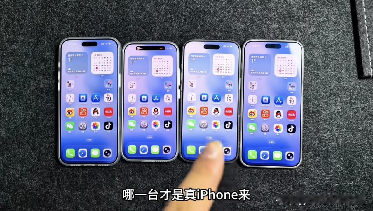 “哪一台才是真的iPhone”? 说实话,我第一眼完全是懵的…… 我只能大概看出第二台可能不是iPhone、其他真的看不出区别啊。 不是。 现在最新的国产安卓旗舰手机已经这样了吗? 这是故意下载了第三方的iOS风格的UI还是系统本身就是这样的? 不是早就说苹果没有创新了嘛…… 怎么现在反而越来越像iPhone了? 摄像头模组造型、边框设计、灵动岛,甚至包括命名方式…… 最后,你能找出真的iPhone吗?