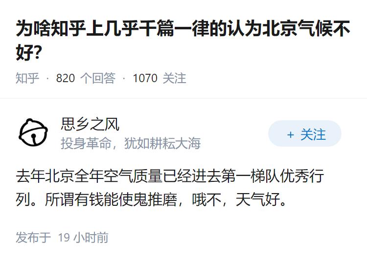 为啥知乎上几乎千篇一律的认为北京气候不好?