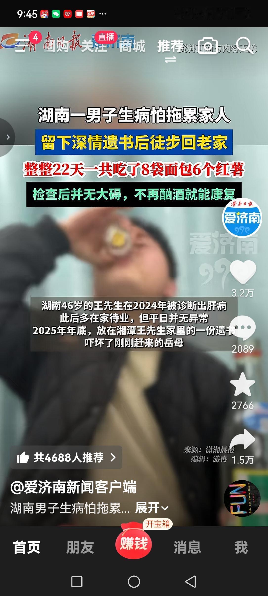 少食多运动真的能治百病? 刚刚刷到这个新闻,不由得吃了一惊! 湖南46岁的王先生,因为体检查出了肝病,就无心工作,每日待在家里郁郁寡欢。 看着忙碌的妻子,还未成家的孩子,为了不拖累家人,他决定离家出走。 他留下一封遗书,身无分文的走出了家门。 走累了就向好心人讨口吃的,因为没有带手机,家人也联系不上他。 家人报警后,终于找到了在外徒步22天的王先生。 他说,自己这些天,一路前行,只吃了八个面包,六个红薯。因为有心事,也感觉不到饿,困,几乎没有怎么睡觉。 家人带王先生去检查,竟然发现他的肝病并无大碍,只要不酗酒就会康复。 只能说,王先生真是太幸运了! 不过也真佩服他的勇气,徒步22天,身体不好还真受不了!