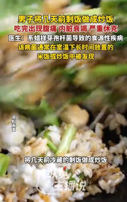 “悲剧还是发生了!”近日,广东,一名男子为了不浪费几口剩饭,就把冰箱里放了几天的冷饭做成炒饭吃下肚,结果不到两小时就突发剧烈腹痛、上吐下泻,很快陷入休克,送医后竟被确诊为内脏衰竭!网友:剩饭也不能吃了? 话说就在那天傍晚,一男子结束一天工作回到家。 为图方便,他将已在冰箱存放两天的剩饭取出,之后搭配虾仁、木耳、青菜等食材炒制后食用。 在饭桌上,他还满意地想着:既解决了剩饭,又省了做饭时间,一举两得。 然而不到两小时,他开始感到腹部隐隐作痛。 这起初他并没在意,以为只是普通消化不良。 可之后疼痛迅速加剧,从隐隐作痛发展为剧烈绞痛,随后出现呕吐、腹泻等症状。 情况急转直下,他很快出现面色惨白、呼吸困难等严重休克状态。 当时家人见状,急忙将他送往南星街道社区卫生服务中心。 而医生初步诊断后,认为病情危重,迅速通过绿色通道联系杭州市第一人民医院,并呼叫120急救车将其转送该院急诊。 送达市一医院时,男子已生命垂危。 好在经ICU医务人员全力抢救,最终化险为夷。 而医生诊断结果让人意外:导致这场危机的,竟是一碗普通的隔夜炒饭。 男子所患的是由蜡样芽孢杆菌引起的严重食源性疾病,俗称“炒饭综合征”。 要知道蜡样芽孢杆菌是一种常见于米饭、炒饭等淀粉类食品中的细菌,尤其在室温存放条件下极易大量繁殖并产生毒素。 而这种细菌会产生两种毒素:呕吐毒素和腹泻毒素。 呕吐毒素尤其危险,它需要在126℃的高温下加热90分钟才能被去除,普通家庭烹饪的加热温度和时间远不能达到这一要求。 这就是为什么即使将剩饭高温翻炒,仍可能引发食物中毒的原因。 更棘手的是,这类污染往往不易通过外观、气味察觉,使得防范难度增加。 许多受害者像男子一样,在完全不知情的情况下吃下了“有毒”炒饭。 除了隔夜米饭,还有多种常见食物隔夜后也会产生健康风险。 绿叶蔬菜在烹饪后若长时间放置,易产生大量亚硝酸盐。 有实验将绿叶菜炒制后放置在25℃的常温环境下保存,24小时后亚硝酸盐含量达到0.1g/kg以上,而成人摄入0.2g亚硝酸盐即可引起中毒。 还有海鲜产品如虾、蟹等本身可能携带多种细菌,隔夜后细菌会迅速繁殖并可能产生毒素,引起胃肠道不适,甚至对肝、肾功能造成损害。 木耳、蘑菇类食品在室温下泡发过久或煮熟后放置时间较长,不仅会生成亚硝胺,还可能产生米酵菌酸毒素,严重可致死。 溏心蛋等半熟鸡蛋往往杀菌不够彻底,可能含有沙门氏菌等多种致病细菌,久放更易滋生细菌。 而要避免“炒饭综合征”,关键在于科学的食物保存方法。 米饭煮熟后应尽快食用,如需保存,应在烹饪后两小时内放入冰箱。 室温下放置时间越长,蜡样芽孢杆菌繁殖的风险越高。 在保存米饭时,最好使用浅容器盛放,这样米饭能更快冷却,减少细菌繁殖机会。 而不建议将一大锅米饭直接放入冰箱。 冰箱不是“保险箱”,剩饭在冰箱中存放时间最好不要超过24小时。 在食用前应彻底加热,确保食物中心温度达到70℃以上,并避免反复加热。 男子的案例引发人们对节俭与健康平衡的思考。 专家指出,节俭是美德,但不能以健康为代价。 其实许多人存在认知误区,认为食物放入冰箱就绝对安全,或者认为高温加热能杀死所有病菌。 实际上,预防“炒饭综合征”最有效的方法是现做现吃,避免食物长时间存放。 在烹饪时应按需制作,尽量减少剩饭剩菜的产生。 如果确实有剩饭,最好在5-6小时内食用完毕。 而且食用前应充分加热,并观察食物是否有异常现象。 除了正确保存食物,日常厨房卫生也不容忽视。 砧板、筷子等厨具使用时间不宜过长,尤其是木质和竹制厨具容易产生划痕,成为细菌滋生的温床。 有报道称,一位女士因使用5年未更换的筷子,胃中发现黄曲霉菌。 还有洗碗海绵应每月更换一次,因为其湿润环境容易滋生细菌。 不粘锅涂层破损后不宜继续使用,因为涂层破损后可能释放有害物质。 烹饪时油烟机应在炒菜结束后继续运行一段时间,以确保油烟和有害物质完全排出。 一碗普通的隔夜炒饭,险些夺走一条生命。 他的经历给我们敲响了警钟:节俭固然可贵,但健康更应珍视。 在日常生活中,我们应掌握科学的食品储存知识,培养健康的饮食习惯,让“炒饭综合征”这样的意外远离我们的生活。 毕竟,健康才是最大的财富。 主要信源:(警惕!广东一男子吃剩饭诱发重病进ICU!吃不完的饭菜怎么保存才安全...——环球网)