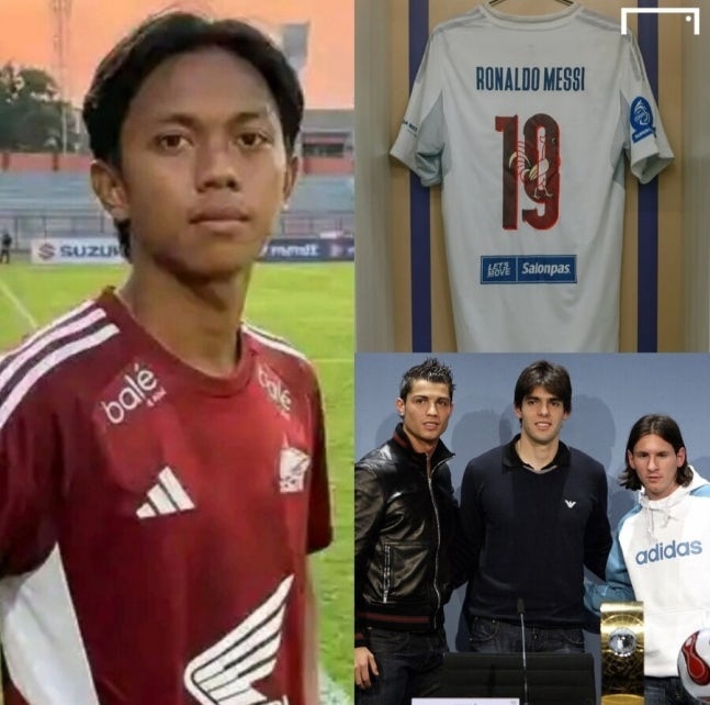 印尼球员卡卡·罗纳尔多·梅西走红 球衣照获2.6万点赞,这位球员名字为Kaka Amrullah Ronaldo Messi,出生于2007年,在印尼超第18轮前,球队为他准备了印有19号的球衣,球衣背后的名字为罗纳尔多·梅西。