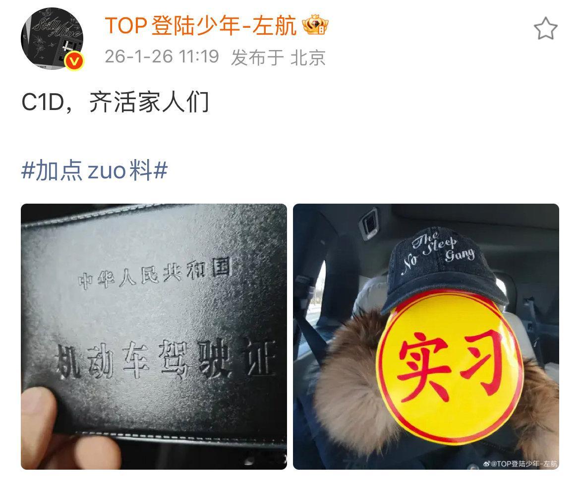 左航拿驾照了左航晒驾驶证 1月26日,晒机动车驾驶证,并配文:“C1D,齐活家人们。”