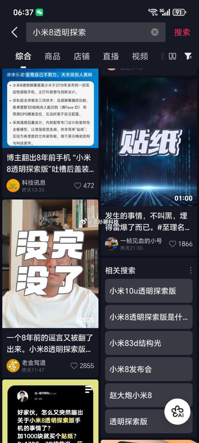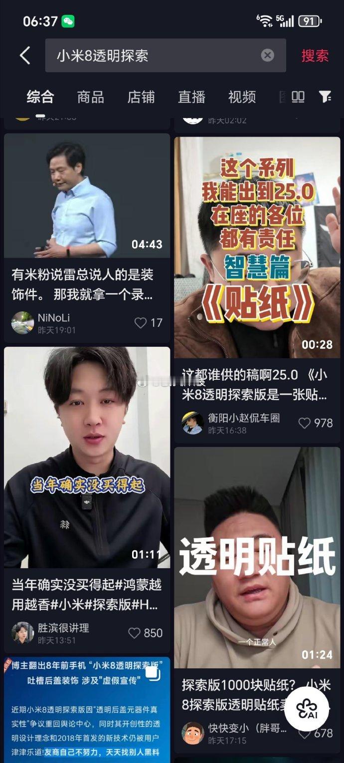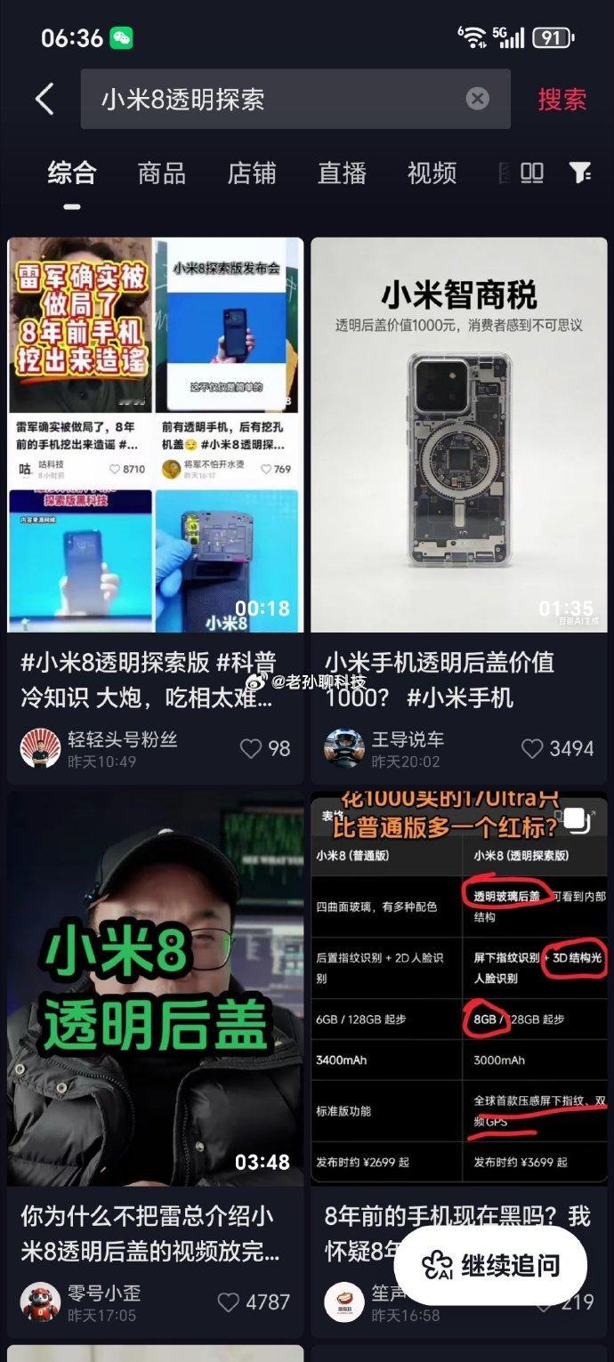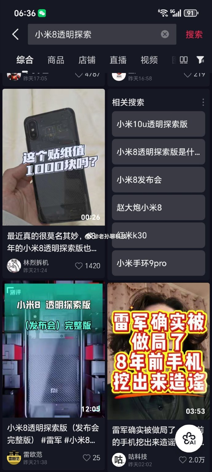 小米越来越好了,友商实在找不到小米的黑料,也找不到雷军的黑料了,只能在历史上扒最近发现好多人都在骂小米8透明探索版,1000块钱买张贴纸,雷军没良心,小米坏透了问题是,小米8是2018年发布的手机,现在过去8年了,才想起来骂?实在找不到活了可能现在找不到小米的黑点,也没办法骂雷军了,从历史上找小米黑料骂