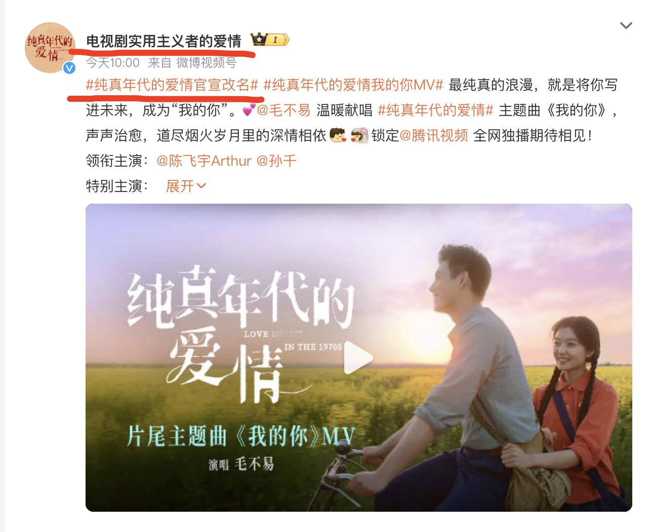 陈飞宇新剧竟然改名了,《实用主义的爱情》有反差和矛盾,确实比《纯真年代的爱情》好,《纯真年代的爱情》太土了。