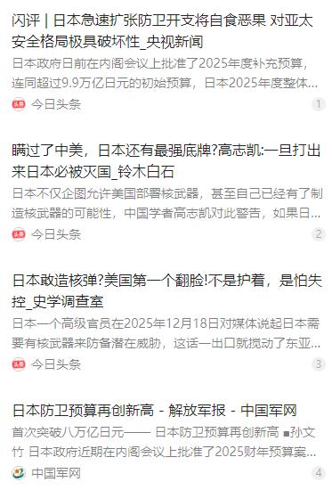 稀土制裁?日本不怕。开战?日本也做好了准备。但有一个剧本,是东京连想都不敢想的噩梦:美国突然调转枪口,和中国站到了一条战壕里!引发这场地缘级反转的,正是日本自己作死的两步棋——军国主义复辟加上妄图染指核武器。这一步,直接把天捅破了! 麻烦看官老爷们右上角点击一下“关注”,既方便您进行讨论和分享,又能给您带来不一样的参与感,感谢您的支持! 稀土作为全球重要的稀土生产国,日本虽依赖进口,但在战略上却敢于对外界发出强硬信号。表面上,这显示了东京在资源争夺上的自信,但背后实际上依赖的,是美国的“安全伞”。 稀土制裁、出口限制,这些举动在可控范围内,可能让日本在全球舆论中取得短期的战略筹码。 一旦这种操作失控,打破供应链平衡,对全球产业链造成冲击,日本自己也难以承受。 其次,是军事上的野心。近年来,日本的军事现代化步伐明显加快,从自卫队装备更新到军事预算提升,都显示出其企图在区域事务中拥有更大话语权。 更重要的是,日本在舆论与政治层面逐渐复兴军国主义倾向,将历史修正主义与现代军事发展相结合,试图塑造一种强硬形象。 在外界看来,这种强硬可能是威慑,但对本国及周边国家而言,这却是一种潜在的安全隐患——尤其是当这种威慑没有明确约束机制时,风险极易放大。 最令东京不安的,可能并不是外部压力,而是战略博弈的“不可控因素”。 日本长期以来在核能与核技术研究上的探索,从民用核能到高端核技术试探,逐渐引发区域安全关注。其目的无非是想通过核技术积累增加战略筹码,从而在中美之间的博弈中获得更大的主动权。 问题在于,一旦日本跨过某条核门槛,中美两国在约束日本上的利益可能会高度重合,从而将原本的盟友关系,转变为战略风险。换句话说,日本的每一次核试探,都是在走一条极为危险的“边缘路线”。 从战略逻辑上看,日本目前依靠美国的保护,敢于在军事和核技术上试探底线,但这一切的前提是可控。 如果超出了美国可接受的范围,美国可能会调整策略,这种调整甚至可能出现反转,原本的盟友关系可能被重新评估。 历史上,中美在区域事务中有过多次利益协调,当利益出现高度重合时,即便是长期盟友,也可能因为共同利益而暂时站在同一战壕中。 对日本来说,这是一种前所未有的心理落差:一直依赖的“护航者”,可能会因自身风险而转向制衡,而不是无条件支持。 更令人警惕的是,日本试图通过威慑换取尊重的逻辑,可能适得其反。外界可能最初感受到的是日本的强硬与自信,但在战略层面,越界的行为只会引来更多的不信任和压力。 尤其是在核技术领域,一旦触碰敏感红线,不仅会加速中美在战略约束上的共识,也可能引发区域军备竞赛。 日本表面上的“硬气”,很可能在关键时刻变成一个高风险变量,带来的不是尊重,而是孤立。 日本目前的行为模式呈现出一种明显的矛盾:一方面,它试图通过军国主义倾向和核技术探索增加战略筹码;另一方面,它的每一次尝试都在逼近“不可控”的边缘。 短期来看,这种策略可能让东京在国际舞台上赢得关注与话语权,但长期风险极高:一旦超出可控范围,它可能从战略盟友变成潜在的风险源。这不仅是对日本自身的考验,也是对区域安全格局的挑战。 日本未来的战略走向值得高度关注。在资源、军事和核技术三个维度上,它正在试探边界,而每一次试探都可能改变中美、日本之间的战略平衡。 对于东京来说,最大的噩梦,不是外部对抗,而是原本依赖的盟友可能因利益重合而与中国形成战略共识,将日本置于孤立和约束之中。 这种风险并非空穴来风,而是其当前战略操作逻辑下不可避免的潜在结果。 日本在外界看来是强硬而自信的,但在战略全局下,它正在玩一场高风险的棋局。 军国主义复辟和核技术试探,或许能在短期内为日本争取筹码,但长期来看,一旦越界,它就可能失去原有的保护和信任,成为区域安全中最不可控的因素。 东京想靠威慑换取尊重,最终很可能引来更大的压力和不信任,这是一条风险极高的战略边缘路。
