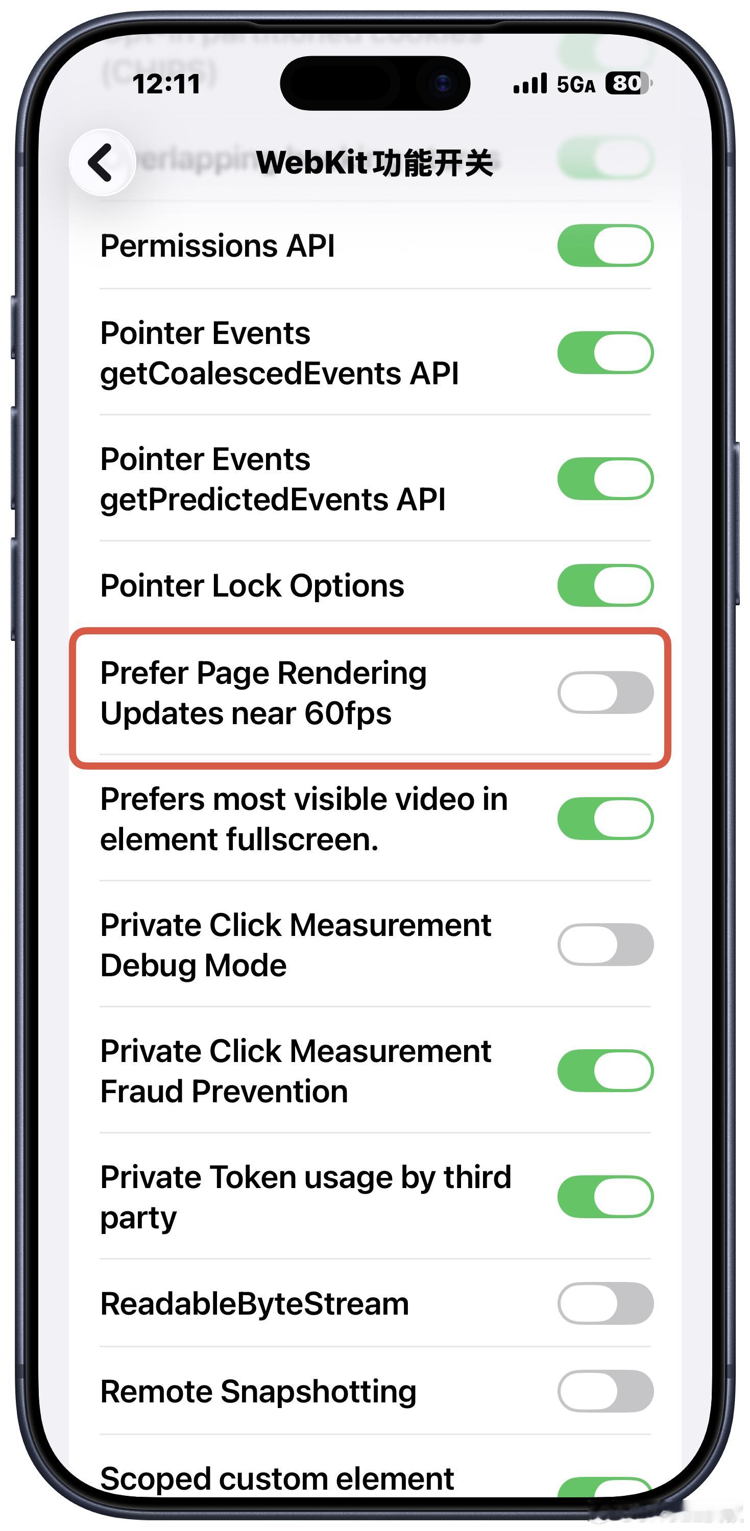 说个冷到不行的:Safari还可以单独再开一次高刷,所有iPhone/iPad/Mac都可以这样设置:设置—搜索App“Safari”—高级—功能开关,找到“Prefer Page Rendering Updates near 60fps”关掉,快去试试有什么不一样手机还有多少我不知道的功能