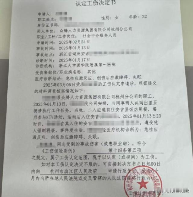 浙江杭州,一女子在公司安排下到外地出差,当时跟客户一行6人聚餐,喝掉4瓶白酒。之