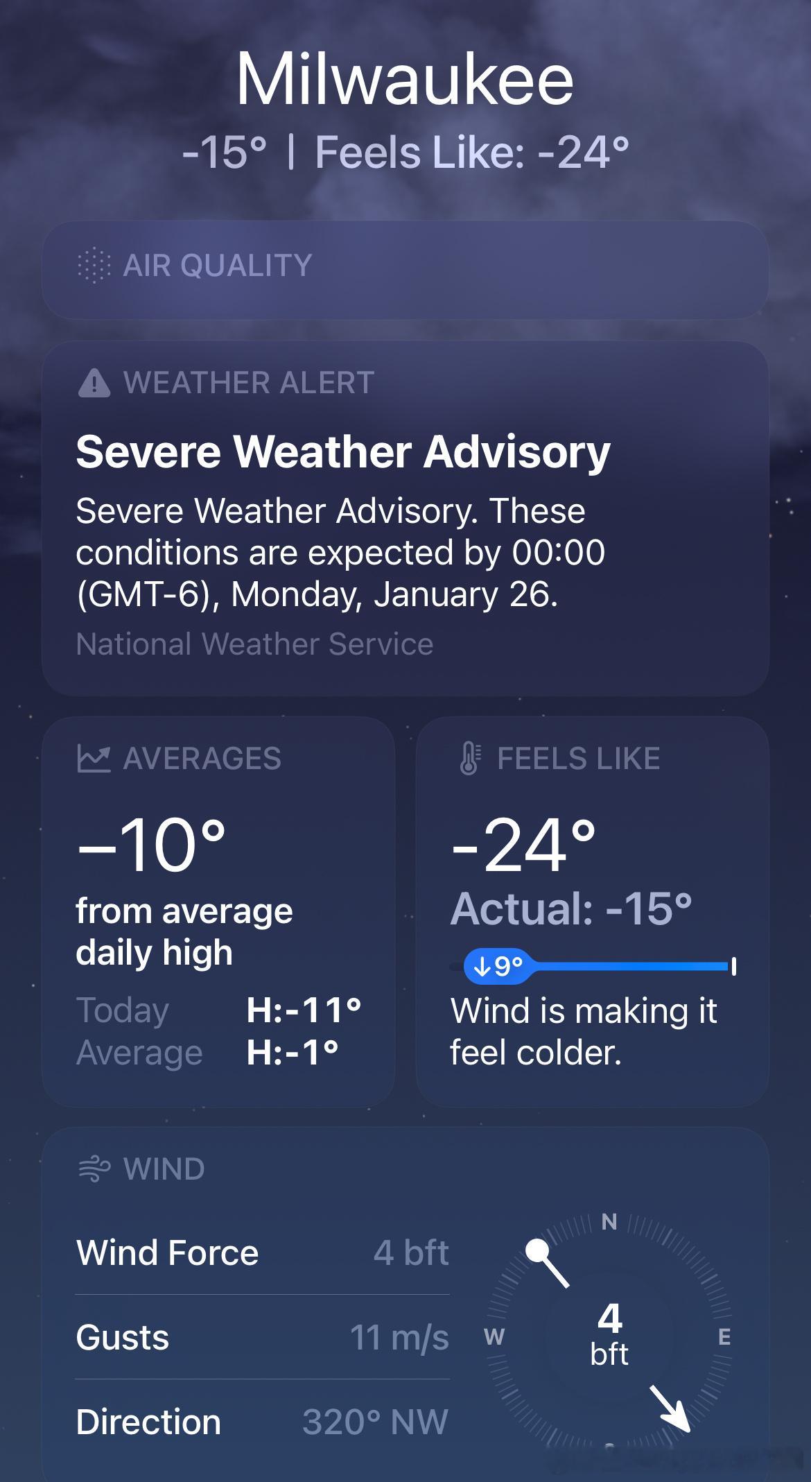 灰熊和雄鹿,各自主场比赛取消,恶劣天气指的是 当地出行的体感温度太低了太冷了!而且有大风💨密尔沃基是皮肤暴露30mins就能被冻伤….nba