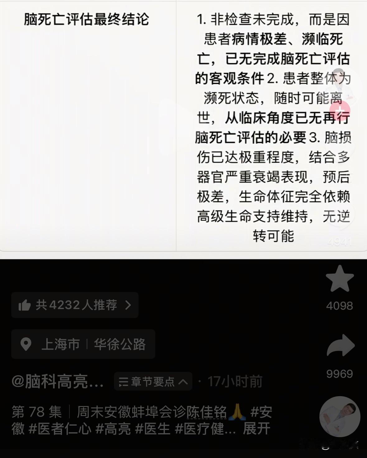 无比悲痛,安徽16岁的陈佳铭的已经进入濒死状态!脑科专家高医生对他进行了义诊,最