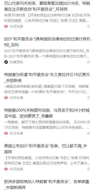 今天把话挑明了说,无论是哪个国家,要加入所谓的特朗普“和平委员会”,那就等于自己主动往特朗普屁股底下钻,自讨苦吃,甘愿受气。其实,有一点战略头脑的领导,都不会让自己的国家加入这个不伦不类的组织。 麻烦看官老爷们右上角点击一下“关注”,既方便您进行讨论和分享,又能给您带来不一样的参与感,感谢您的支持! 2026 年 1 月特朗普政府正式推出所谓的加沙 “和平委员会”,对外宣称这个机构的核心作用是监督加沙地带战后的过渡治理工作,可明眼人都能看出,这不过是美国打着和平的幌子,想要打造全球插手国际事务新平台的借口。 特朗普的野心根本藏不住,他不止一次表露过,这个委员会要取代联合国的部分职能,甚至想让联合国彻底失去存在的意义,其想要架空以联合国为核心的现有国际秩序,挑战当下国际体系的心思昭然若揭。 这个所谓的和平机构,从运作模式到人员构成,都写满了美国的霸权色彩。特朗普亲自出任委员会主席,还为自己设定了可无限续任的规则,所有决策最终都要经他批准,他一人就掌握着整个机构的最终裁决权。 更让人难以接受的是,美方还为这个委员会设置了 10 亿美元的捐款门槛,宣称在章程生效首年捐款超这个数额的国家,能获得不受任期限制的永久入会资格,这直接让一个本该关乎国际和平的机构,变成了美国的私人俱乐部。 特朗普为了让更多国家加入,更是直接动用经济胁迫的手段,顺他者昌逆他者亡的霸道行径展现得淋漓尽致。法国作为安理会常任理事国,一眼看穿了这个委员会的本质,因担忧其削弱联合国框架直接拒绝加入。 得知法国的决定后,特朗普当场翻脸,立刻扬言要对法国的葡萄酒和香槟征收 200% 的惩罚性关税。要知道法国香槟对美出口年额达 7.5 亿欧元,占出口总额五分之一,这一关税威胁直接掐住了法国酒业的对美出口命脉。 除了法国,挪威、瑞典、丹麦等多国也明确拒绝加入该委员会,加拿大则态度暧昧,表示需要对委员会的各项细则进行研究后再做决定,就连美国的一众盟友,也不愿轻易跟着美国的霸权脚步走。 这个委员会最离谱的地方,就是完全无视加沙问题核心当事方的利益。其创始执行委员会的 7 名成员里,有 6 人都是美国人,仅剩的一人是英国前首相布莱尔,巴勒斯坦在核心决策层里连一个席位都没有。 巴勒斯坦伊斯兰圣战组织更是直接发表声明,指出这个委员会的成员构成完全服务于以色列的利益,是强加给巴勒斯坦人的殖民主义解决方案,根本不可能为巴勒斯坦带来真正的和平。 而美国的亲密盟友以色列,也对这个委员会表达了强烈不满。美方公布加沙执行委员会成员名单前,从未与以方进行协调,名单内容还与以色列的政策相悖,这也让美以之间产生了公开的分歧。 特朗普政府还曾宣称有 59 个国家和地区同意加入该委员会,可在 2026 年 1 月 22 日的正式启动仪式上,实际到场的仅有 19 个国家的相关代表,巴以双方的代表更是全程缺席,场面十分尴尬。 其实早在 2025 年 9 月,特朗普就公布了所谓的加沙冲突 “20 点计划”,设立这个和平委员会就是计划中的重要一环,该计划还在 2025 年 11 月获得了联合国安理会的投票认可,中俄两国在此次投票中投下了弃权票。 美方还为委员会组建了加沙执行委员会,声称要支持加沙地带的日常管理工作,可这个委员会的名单里,同样没有巴勒斯坦代表的身影,甚至连负责维护加沙地区安全的国际稳定部队,目前都没有国家承诺派人参与。 多国专家和国际舆论都纷纷指出,特朗普主导的这个和平委员会,从成立之初就充满了霸权主义色彩,完全不具备推动和平的基础,不仅无法为加沙地带带来真正的和平,反而会为地区局势埋下更多隐患。 当今世界的主流是多边主义,国际事务的解决需要遵循联合国宪章的宗旨和原则,靠一个国家独断专行、用经济胁迫手段打造的机构,根本不可能得到国际社会的真正认可,也注定无法走远。 对于世界各国来说,加入这样一个不伦不类的机构,无疑是主动往特朗普的屁股底下钻,只会自讨苦吃、甘愿受气。但凡有一点战略头脑的国家领导人,都会坚守本国的国家利益和国际公平正义,不会轻易踏入这个陷阱。 维护国际和平与稳定,从来都不是某一个国家的独角戏,更不能靠霸权主义的手段实现。只有坚守以联合国为核心的国际体系,各国通过平等协商解决问题,才能真正为加沙地带,为整个世界带来长久的和平。
