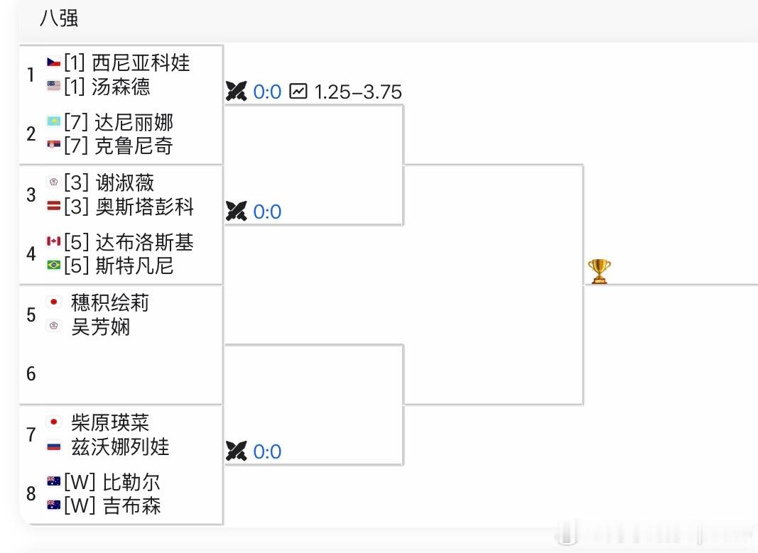 莱巴金娜2比0梅尔滕斯梅尔滕斯单打输了~那么接下来张帅/梅尔滕斯双打 好好发挥咯女双八强 7 缺1 ~ 上半区下半区莱巴金娜晋级澳网八强澳网2026
